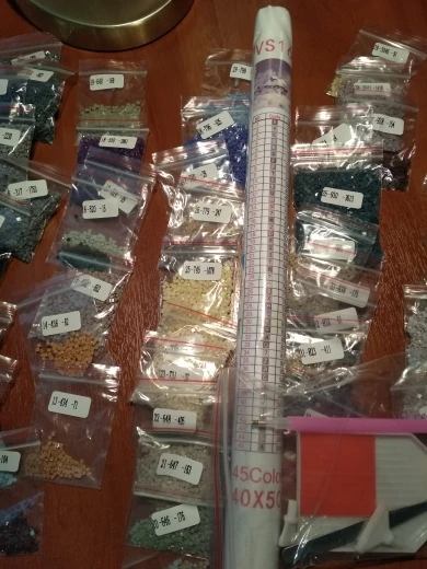 Доставка быстрая. трек отслеживался. коробка помялась, но картина нет, она на валике. 45 цветов, стразы полный комплект, все целенькие, не рассыпались. Лоток, стилус, пинцет и прилипалка. Спасибо продавцу. Позже, когда сделаю, обязательно покажу фото.