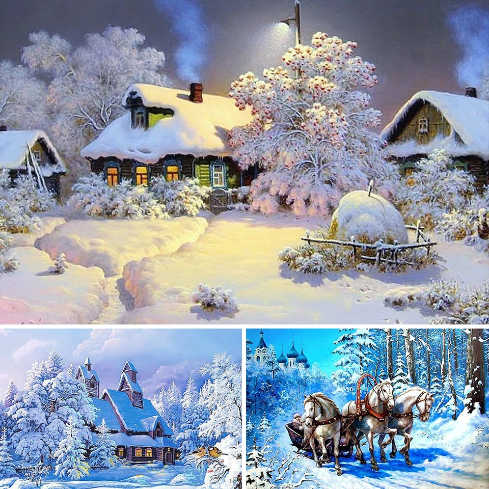 Алмазная картина 5D "сделай сам", зимний дом, пейзаж, Набор для вышивки крестиком, снежный пейзаж, мозаика, художественная картина, декор, подарок