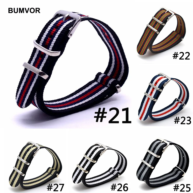 Спортивный тканый нейлоновый ремешок BUMVOR 20 мм, ремешок для наручных часов из ткани в полоску для армии НАТО, сменный DW стальной ремень с пряжкой