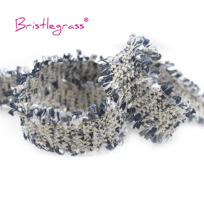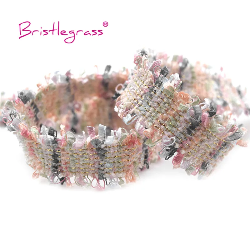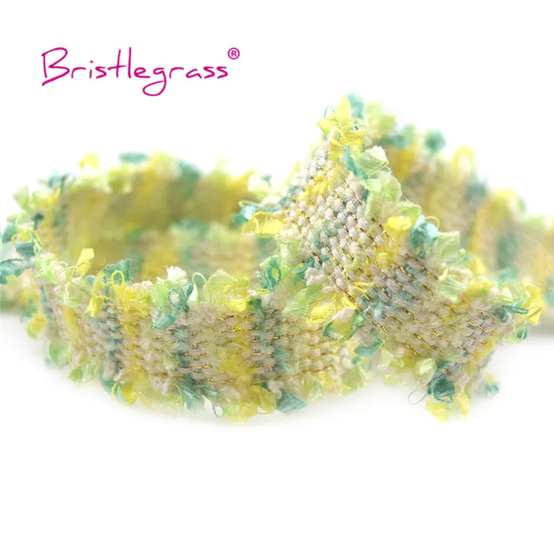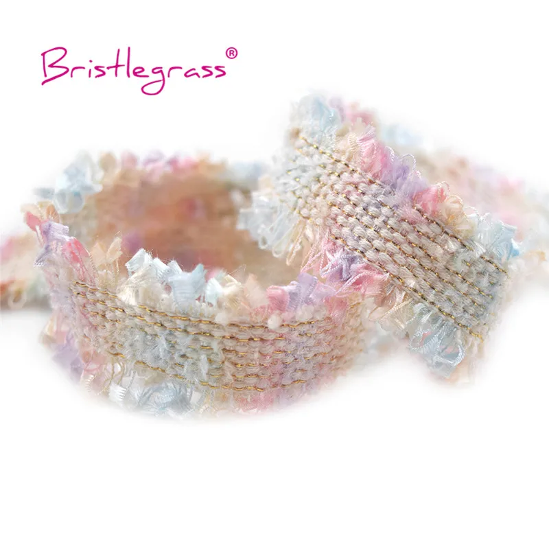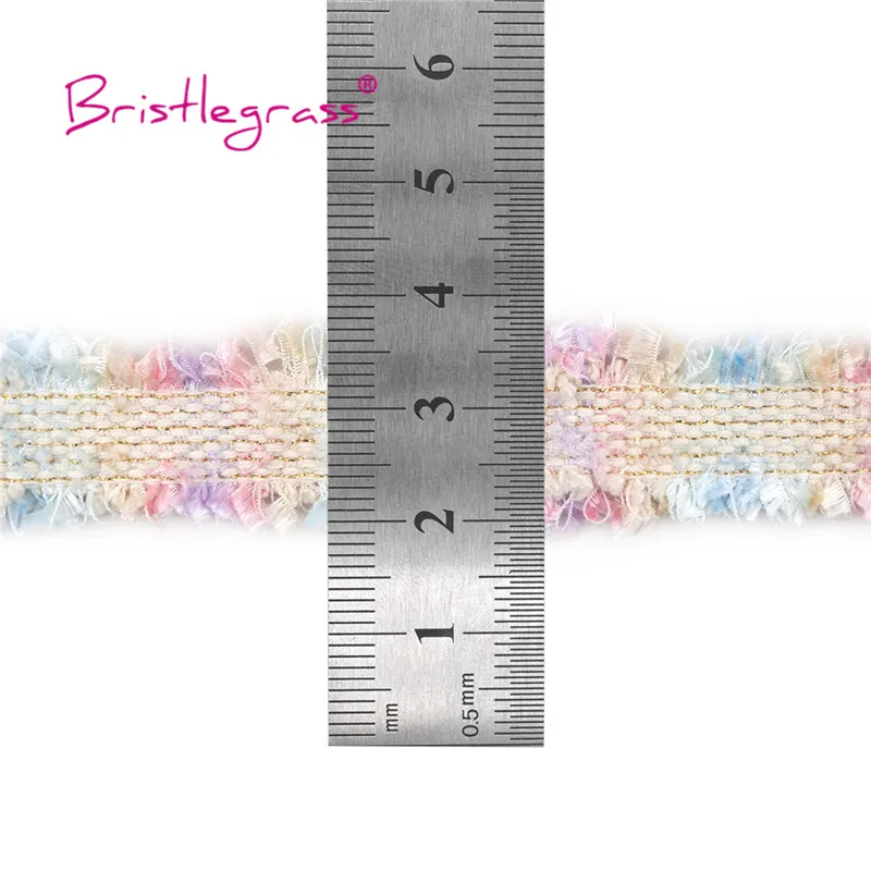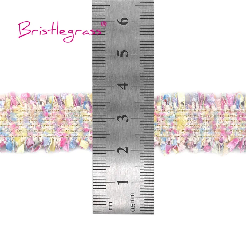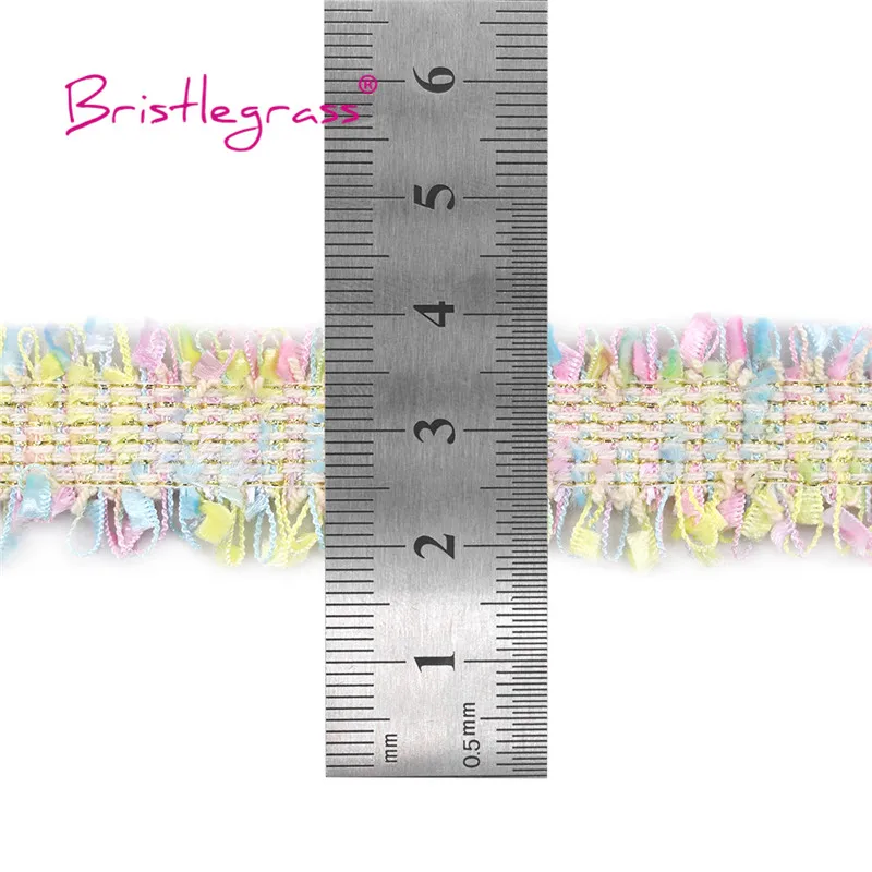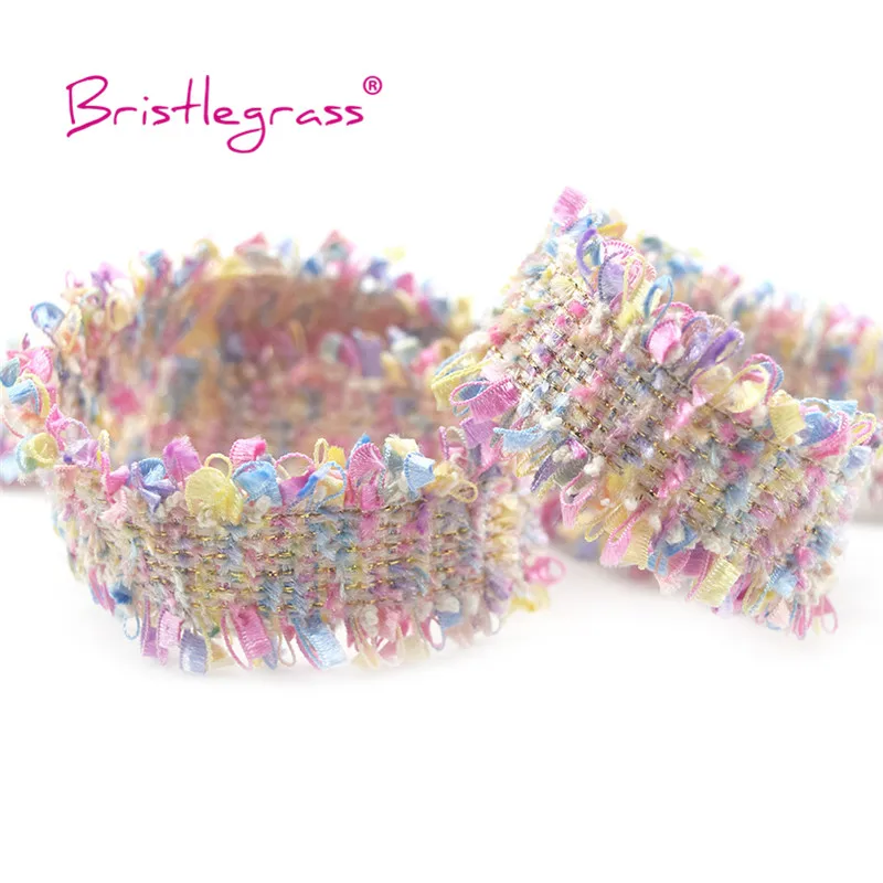 BRISTLEGRASS 1 ярдов 30 мм Радуга твидовая пряжа Плетеный крючком кружевом макраме ленты с кисточками Детские платье с повязкой Швейные Ремесло