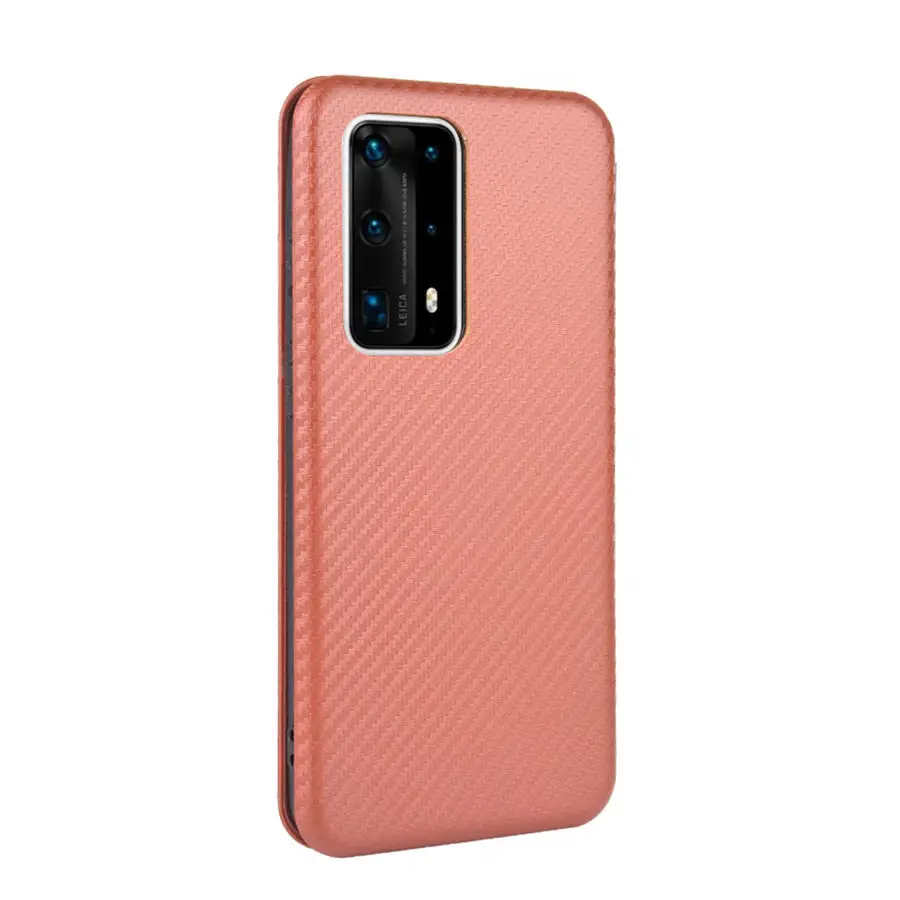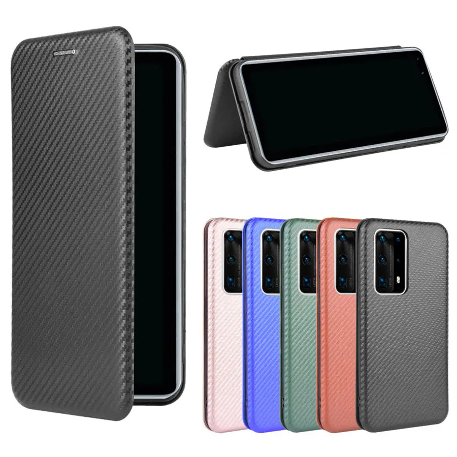 Кожаный чехол-книжка из углеродного волокна для телефона Huawei P30 / P30 Lite / P40 / P40 Pro / P40 Pro Plus / P40 Lite / P40 Lite 5G / P40 Lite E