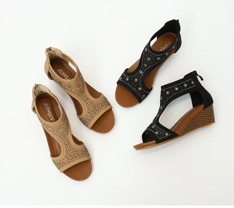 Сандалии на танкетке женские, Повседневная Уличная обувь на платформе, высокий каблук, пляжные босоножки, гладиаторы, размеры 36-42, va413, лето