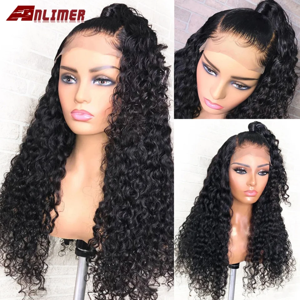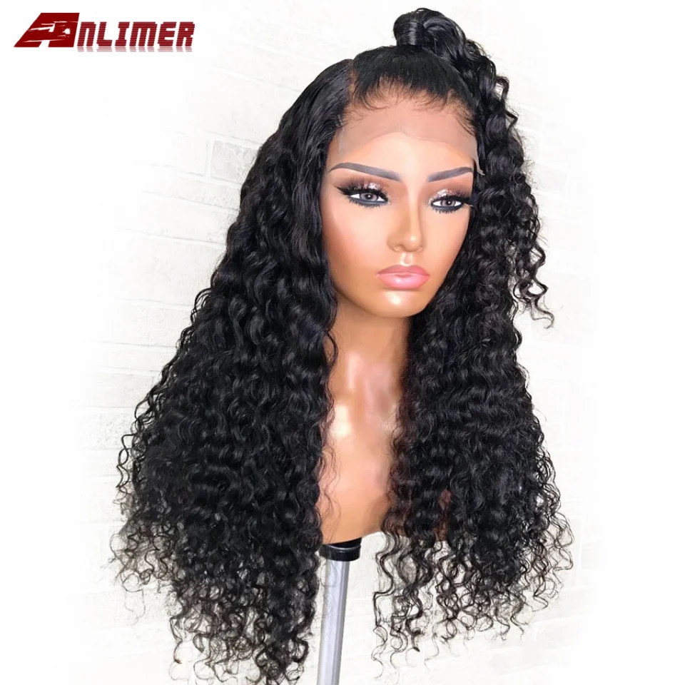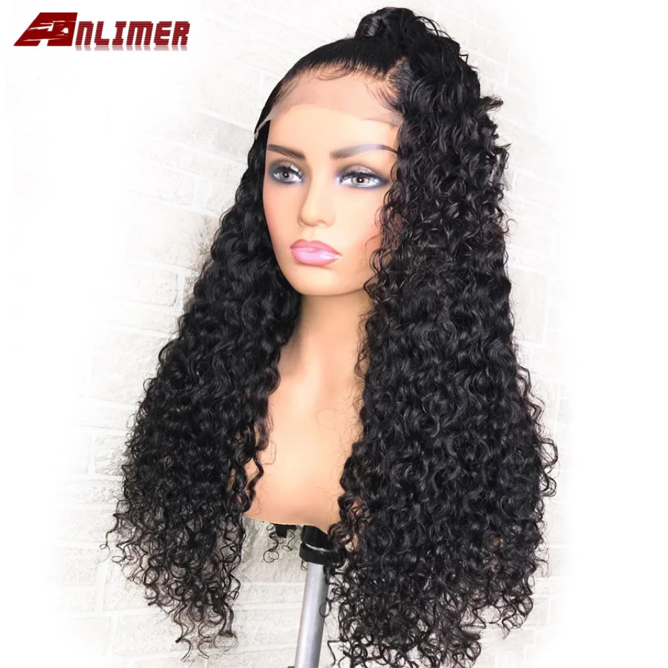 Anlimer 360 Синтетические волосы на кружеве al парик глубоко вьющиеся синтетические волосы на Синтетические волосы на кружеве парики из натуральных волос для Для женщин бразильский Реми вьющиеся волосы глубокая часть 13x6 Синтетические волосы на кружеве парик