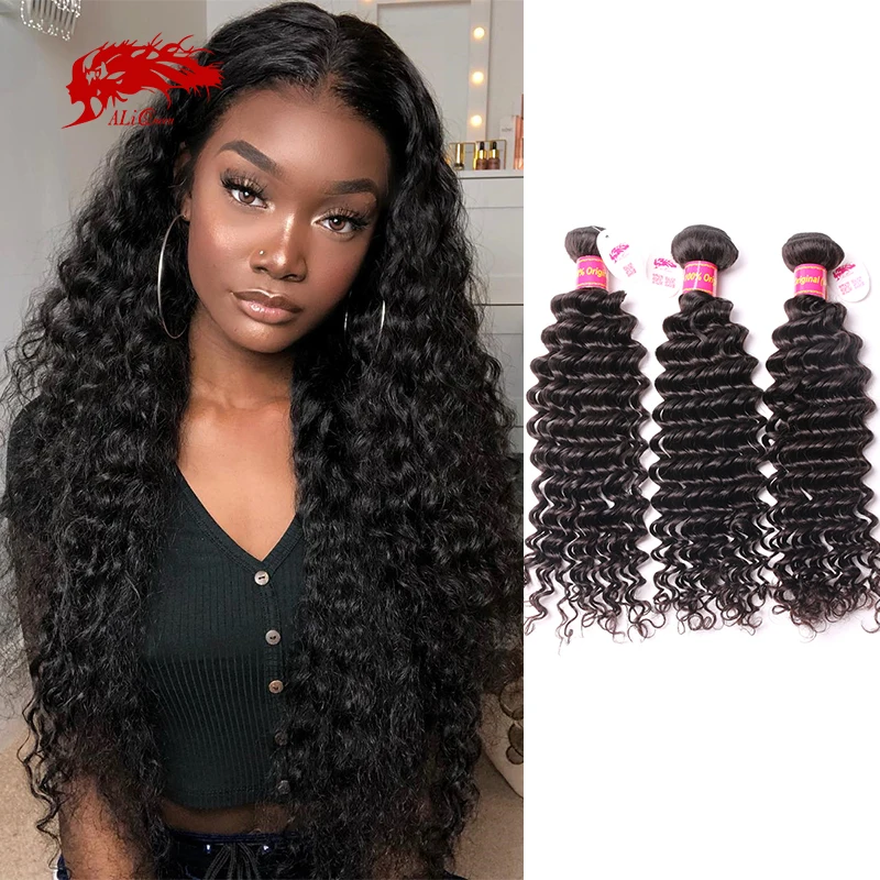 Волнистые человеческие волосы Ali Queen, бразильские натуральные человеческие волосы, плетеные удлинители, натуральные волосы двойного плетения, 30 дюймов