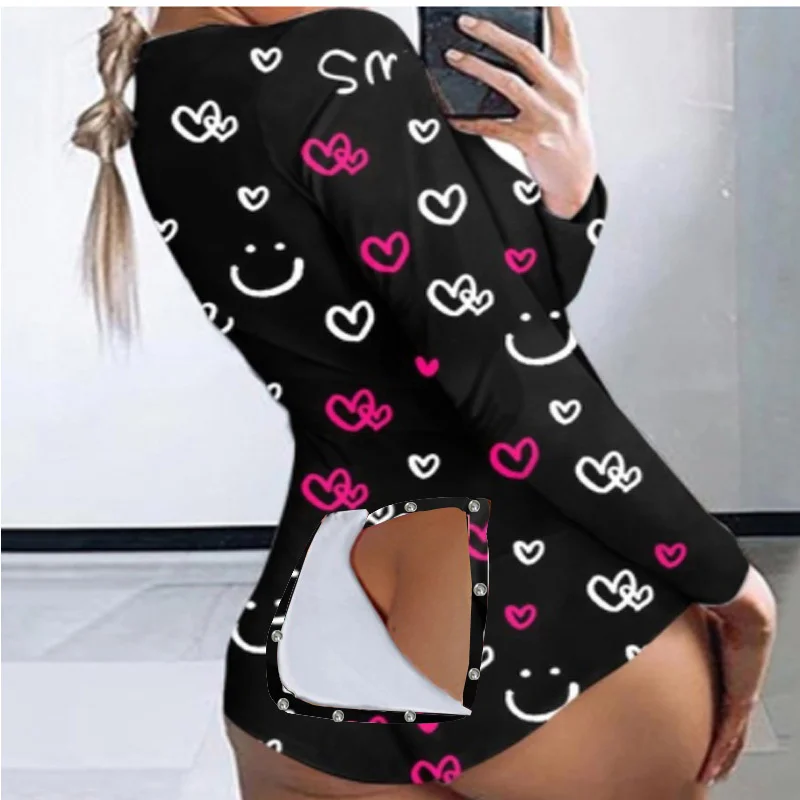 Короткий комбинезон, женская пижама, с клапаном на ягодицах, с глубоким V-образным вырезом, на пуговицах, сексуальное платье для вечеринки