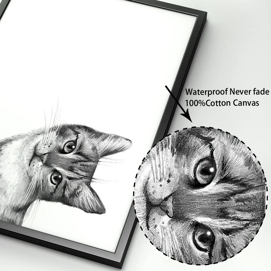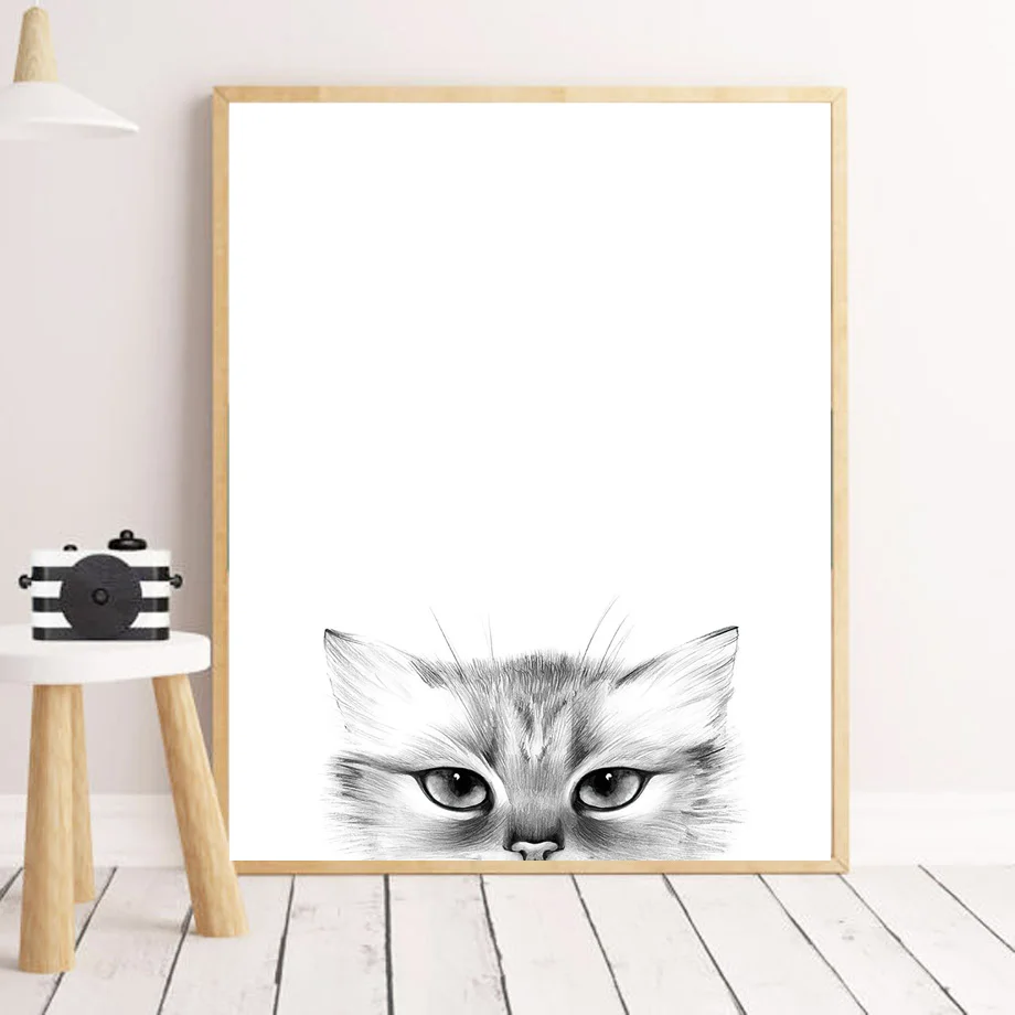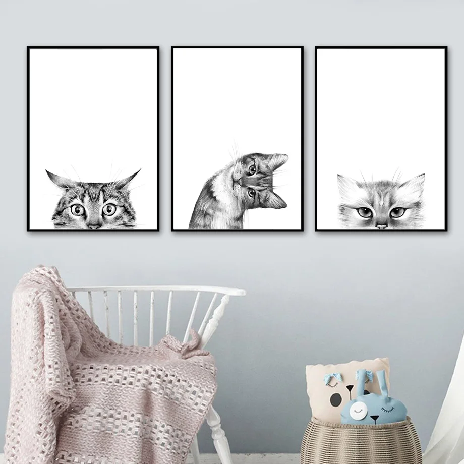 Кот Забавный котенок Животные Детская настенная живопись холст черно-белые скандинавские постеры и принты настенные фотографии для детской комнаты декор