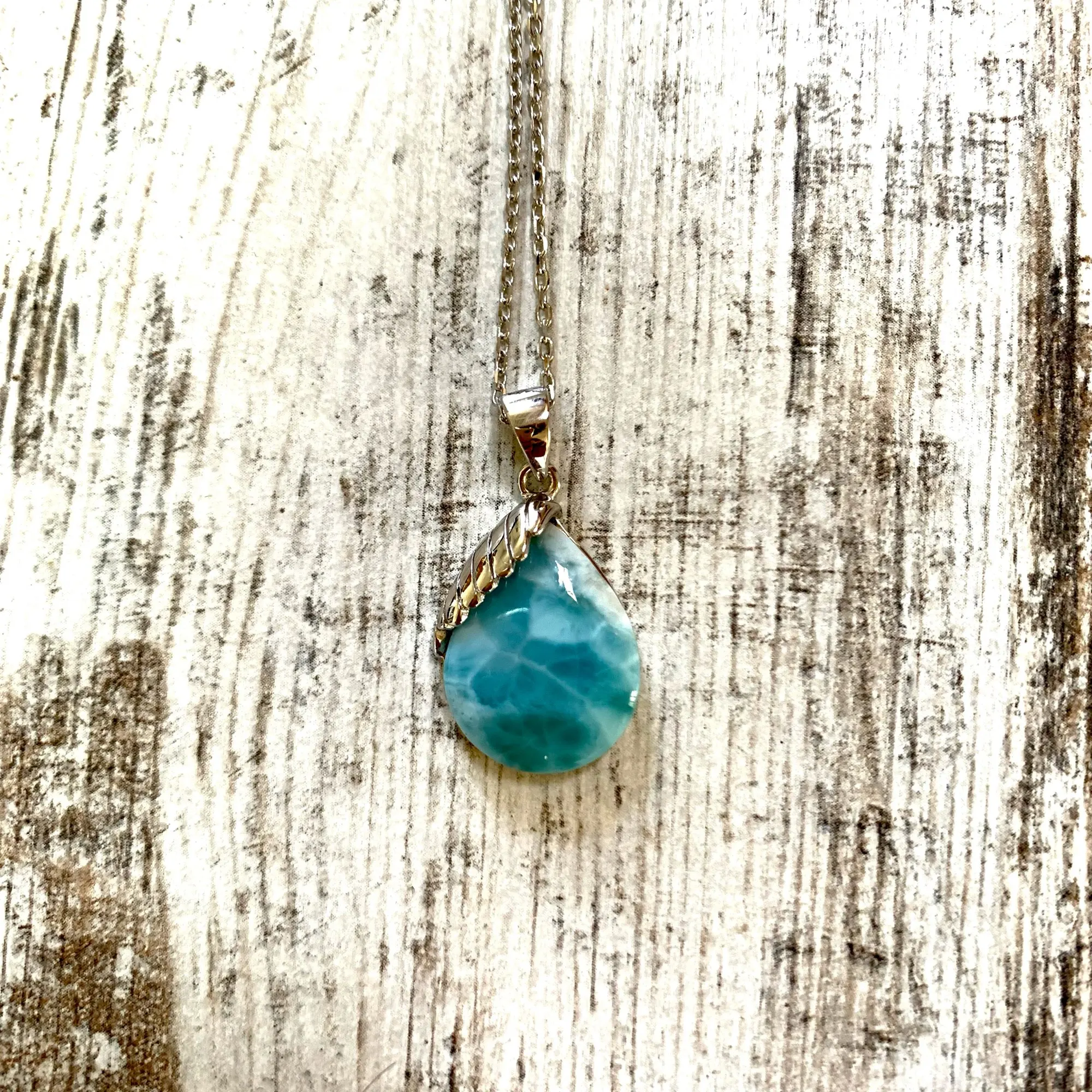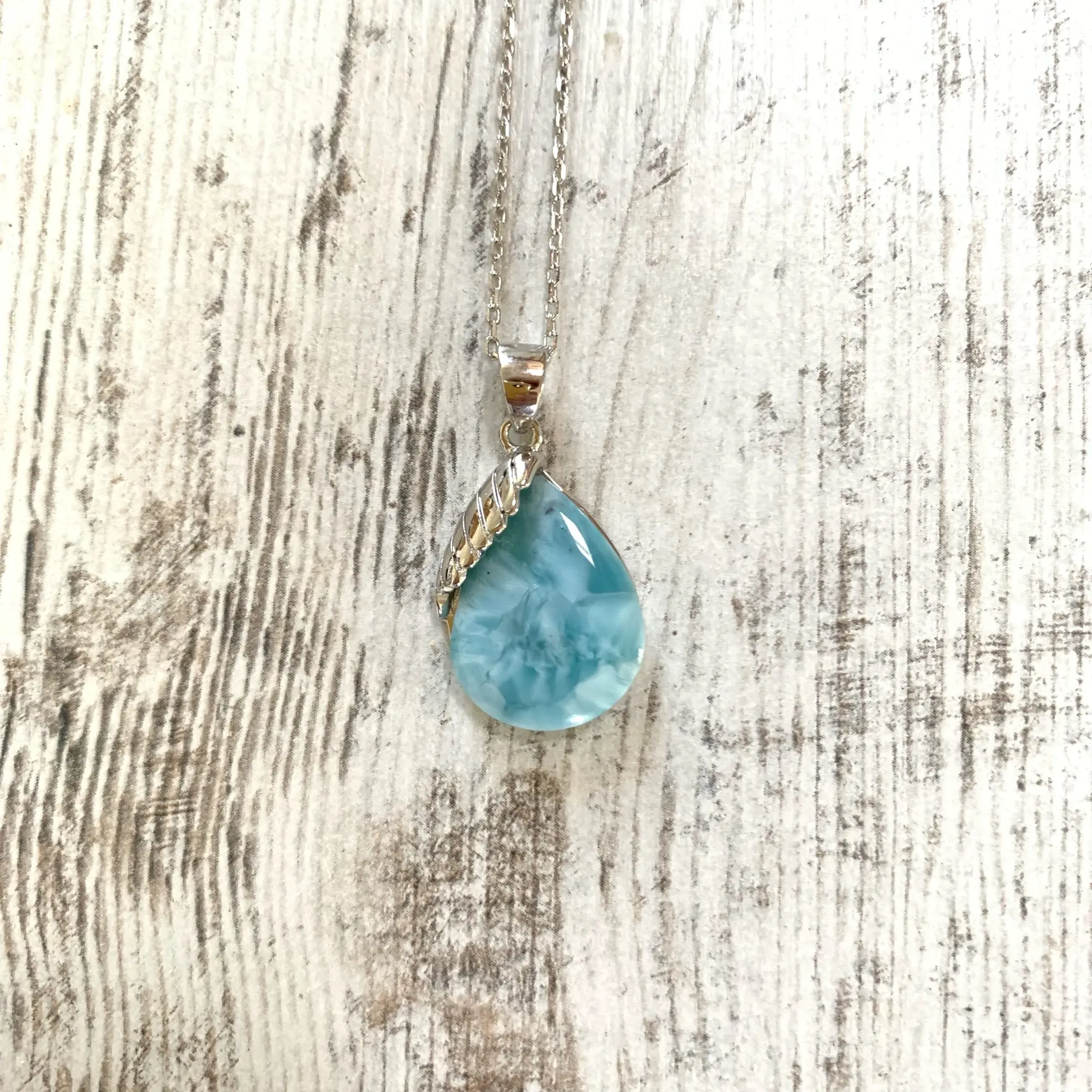 Ювелирное изделие из серебра 925 пробы, классическое ожерелье с натуральным драгоценным ларимаром, Ретро цветок, Женская Морская волна, модное родиевое покрытие