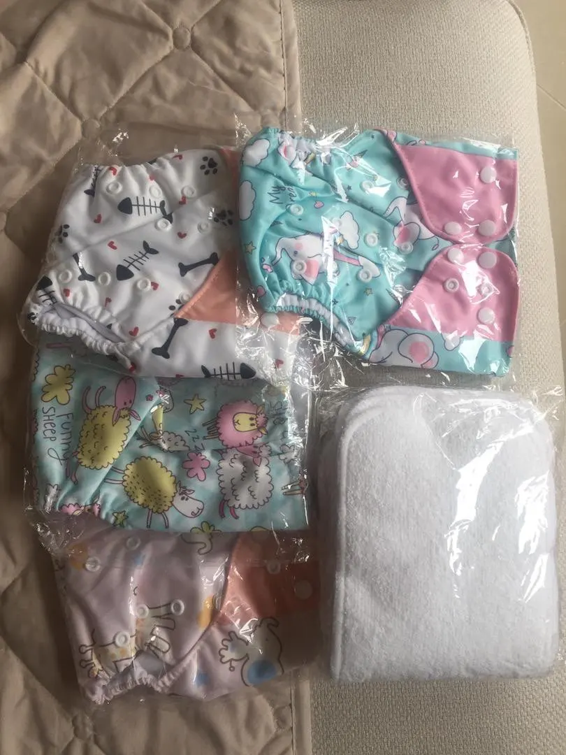 Подгузники детские, 4 шт.компл., многоразовые, регулируемые, моющиеся, 3-15 кг