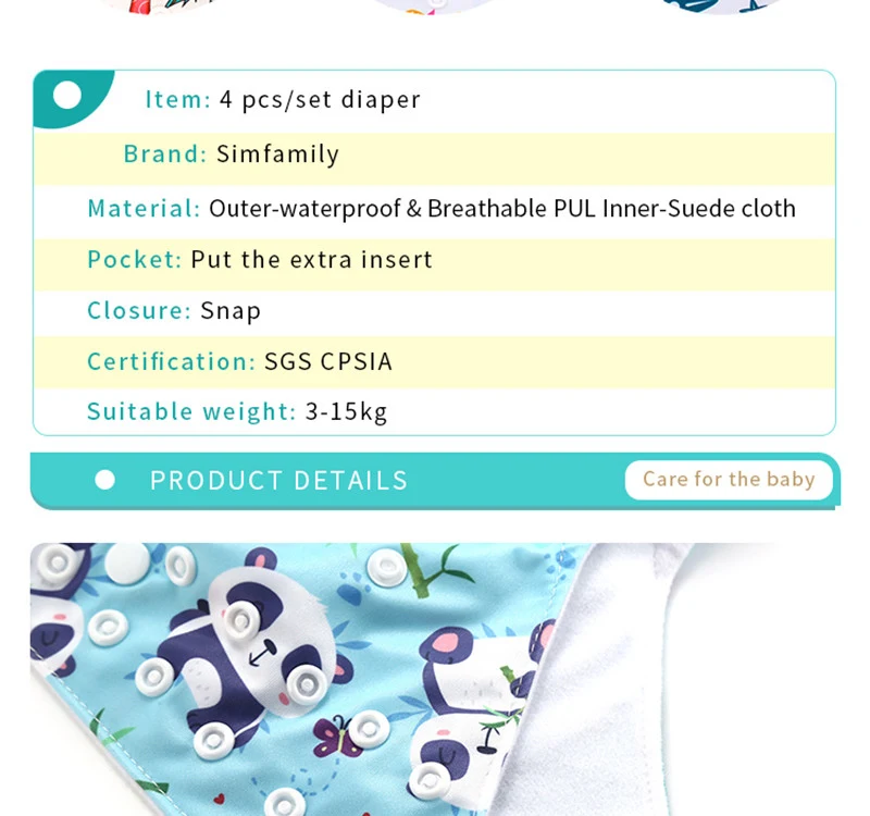 Название товара: Детский Карманный подгузник одного размераРазмер: регулируется для детей 3-15 кг и 3-36 месяцевМатериал:Внешний слой: водонепроницаемый с принтом PulВнутренний слой: замшевая ткань, дышащая и впитывающая влагуИнструкции по уходу:: Стирать тканевые подгузники отдельно от других стирок: Отделить вставку от подгузников. Если они твердые, стряхните твердые отходы в унитаз.: Краску в холодной воде. Машинная стирка в теплой воде с использованием мягкого моющего средства (менее 95 °F), рекомендуется стирать стиральный порошок Babyhug.: Сушка вручную, не используйте смягчители ткани, простыни для отбеливания и сушки.Сколько подгузников вам нужно?-Подгузники для новорожденных до 4 месяцев-20 ~ 30-Детские (от 4 до 10 месяцев)-20 ~ 25 подгузников-Подгузники для малышей (старше 10 месяцев)-15-20