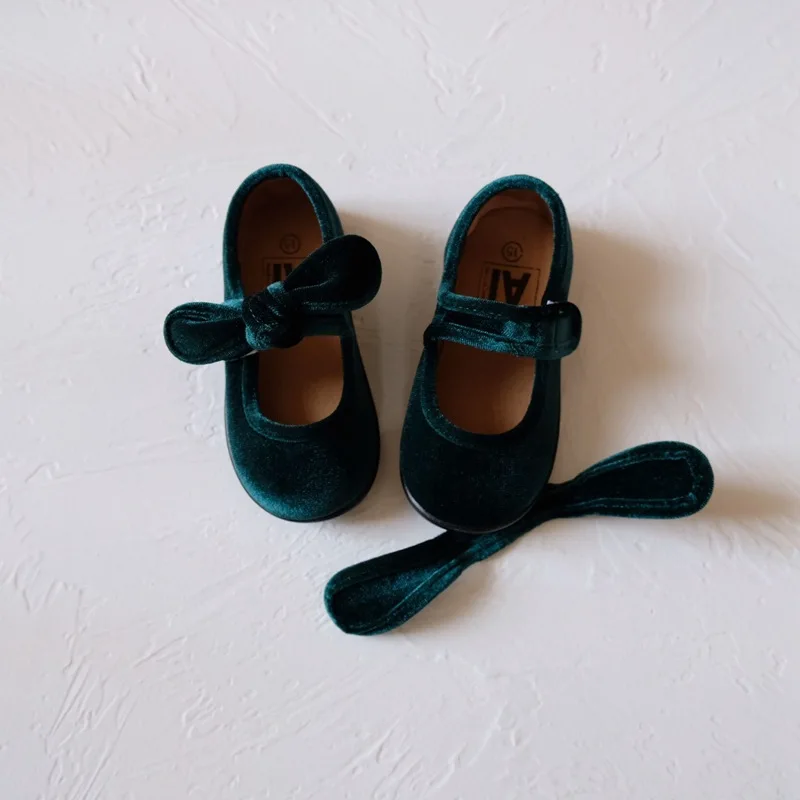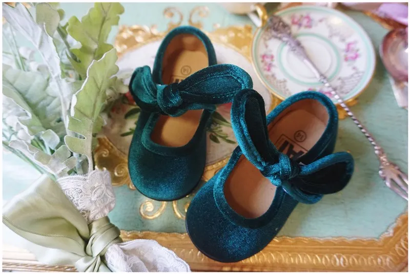 Туфли женские осенне-зимние, с бархатным бантом, на плоской подошве
