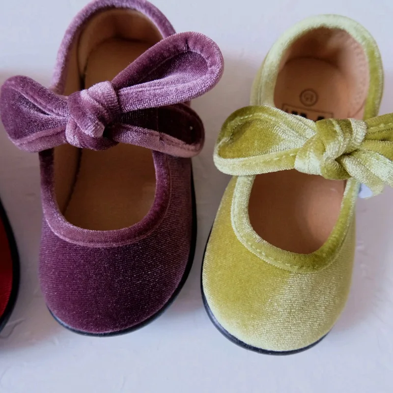 Туфли ULKNN на плоской подошве с бантом для детей, обувь для первых шагов, весна 2021, для маленьких девочек, ретро, для малышей, бархатные съемные туфли, для младенцев, фиолетовые, красные