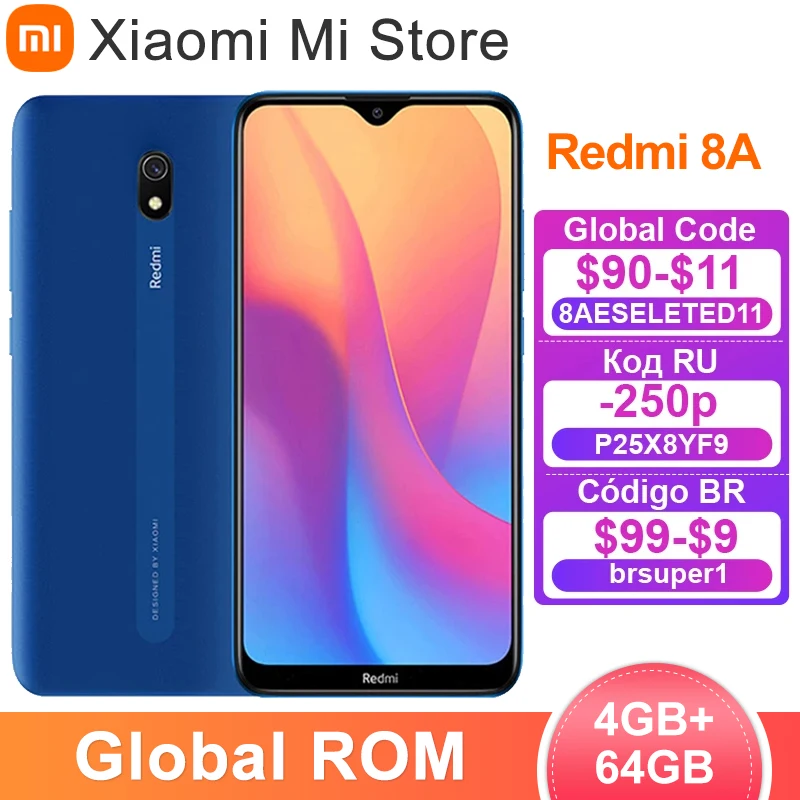 Смартфон Xiaomi Redmi 8A, глобальная прошивка, 4 Гб ОЗУ, 64 Гб ПЗУ, Восьмиядерный процессор Snapdargon 439, задняя камера 12 МП с ии, 5000 мАч, экран HD + с экраном 6,22 дюйма