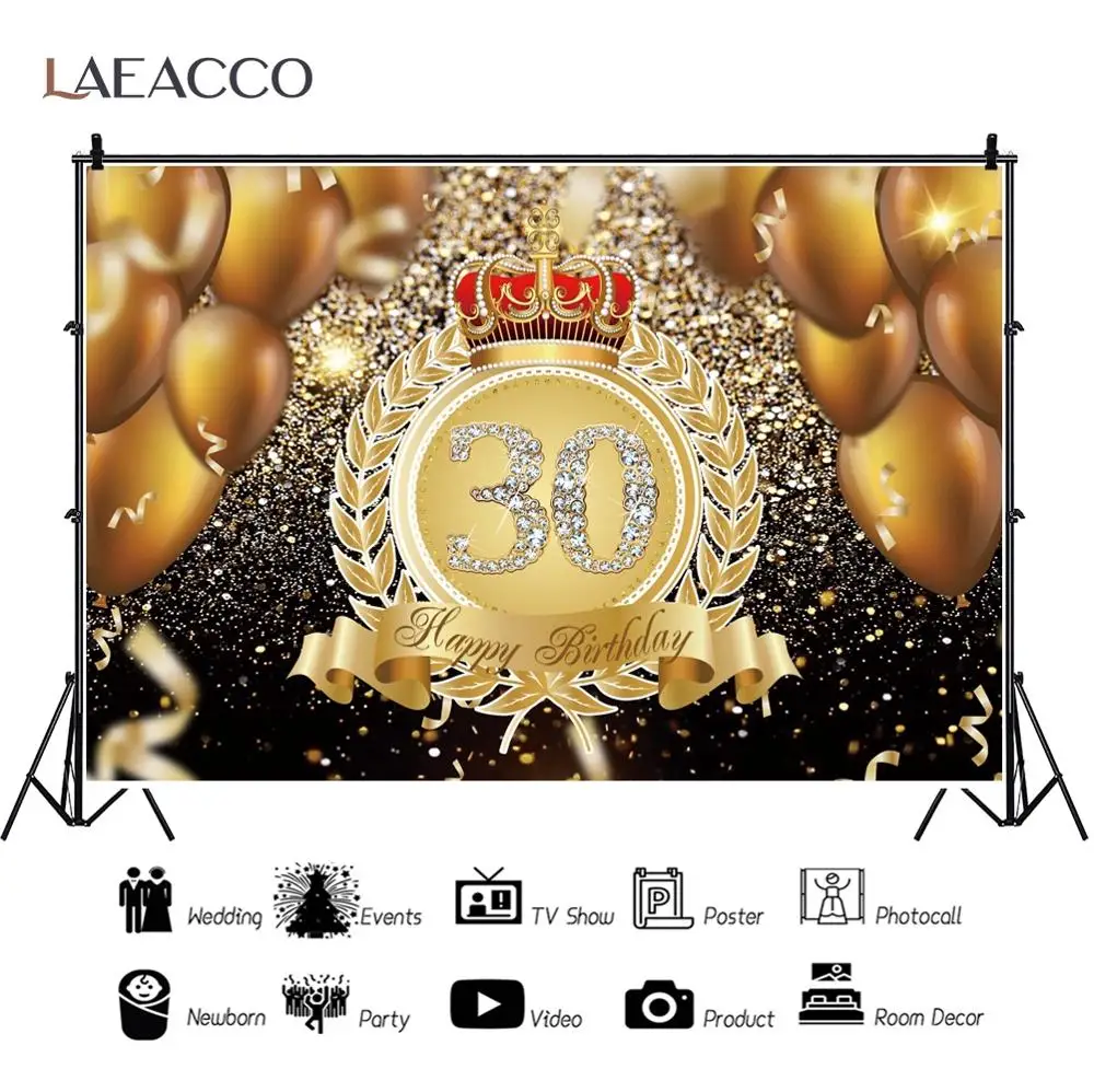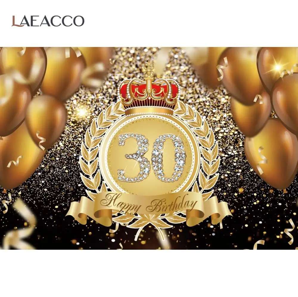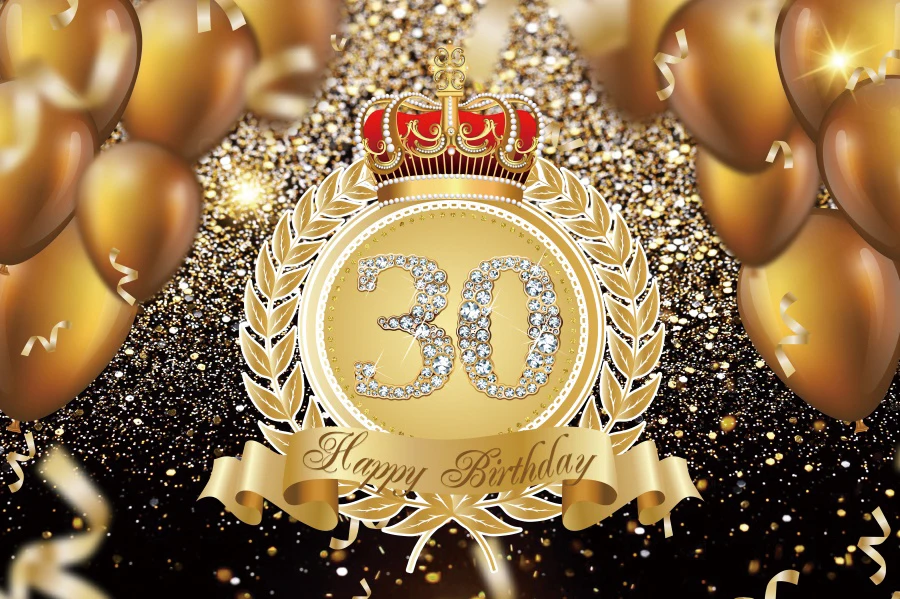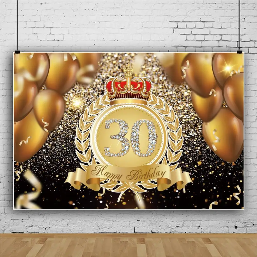 Золото блестящая корона Женская Happy 30th День рождения баннер фон золотые шары черный фон для фотосъемки Фотостудия