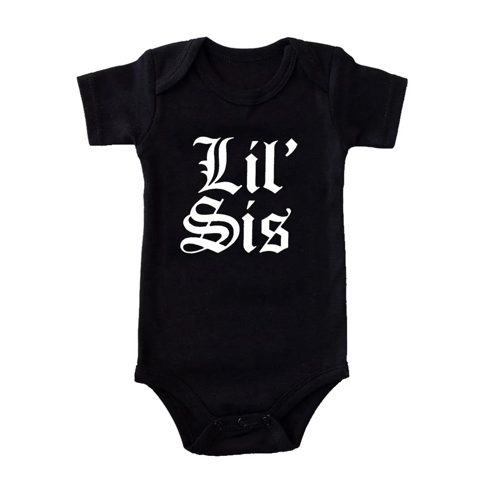 Big Bro Lil Sis одинаковая старинном английском черные футболки Big Brother Little Sister рубашки братьев и сестер Комплект футболок для детей и родителей; Прямая поставка