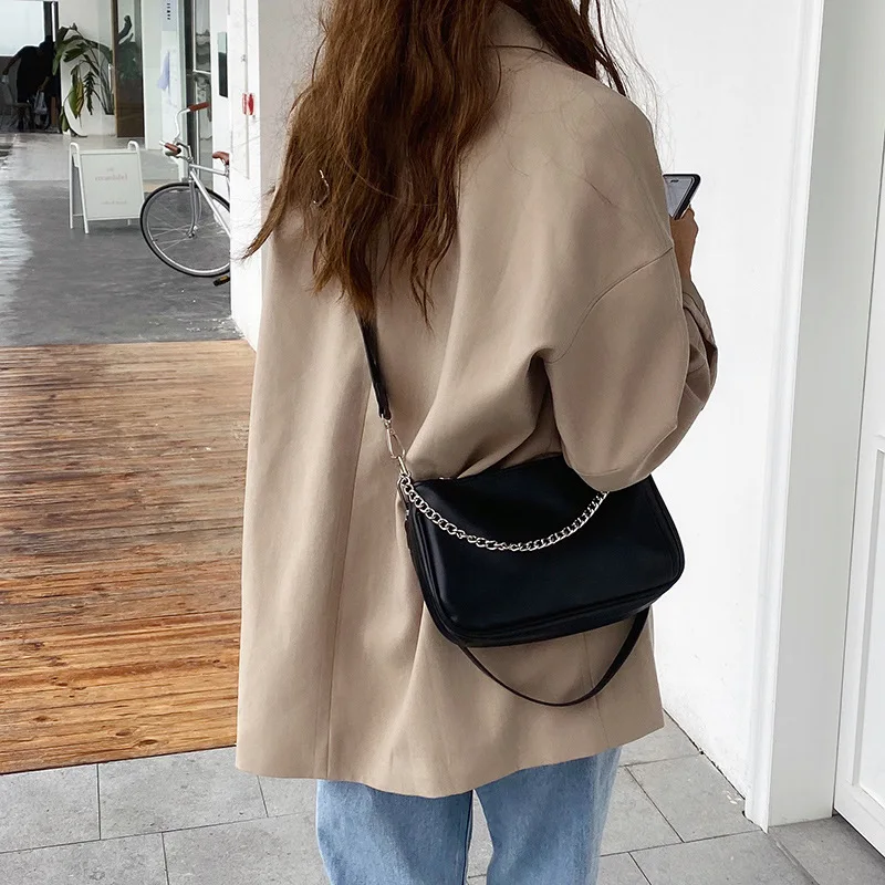 Сумка-хобо женская, из искусственной кожи, с цепочкой, однотонная, 2021