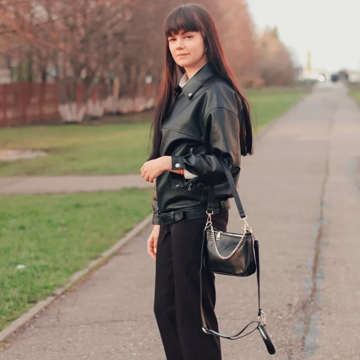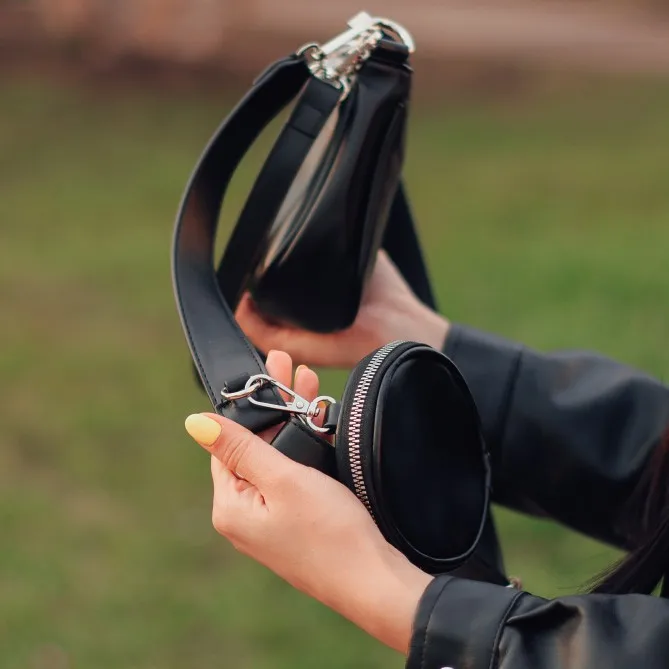 Стильная сумка-багет, заметила, что под каждый образ заказываю новую сумочку, вот и под куртку-косуху и тренч выбрала такую в черном цвете. Заказала в любимом магазинчике PETRICHOR Official Store. Заказ пришел через 2 недели, был тщательно упакован в пакеты и бумагу У сумки два ремешка, один из них регулируется и к нему пристёгивается круглый кошелек. В качестве декора металлическая цепочка. Одно вместительное отделение. Есть плотный подклад. Материал сумки качественная искусственная кожа, плотная, держит форму. Запаха неприятного нет. Пошив фабричный, бирки присутствовали.