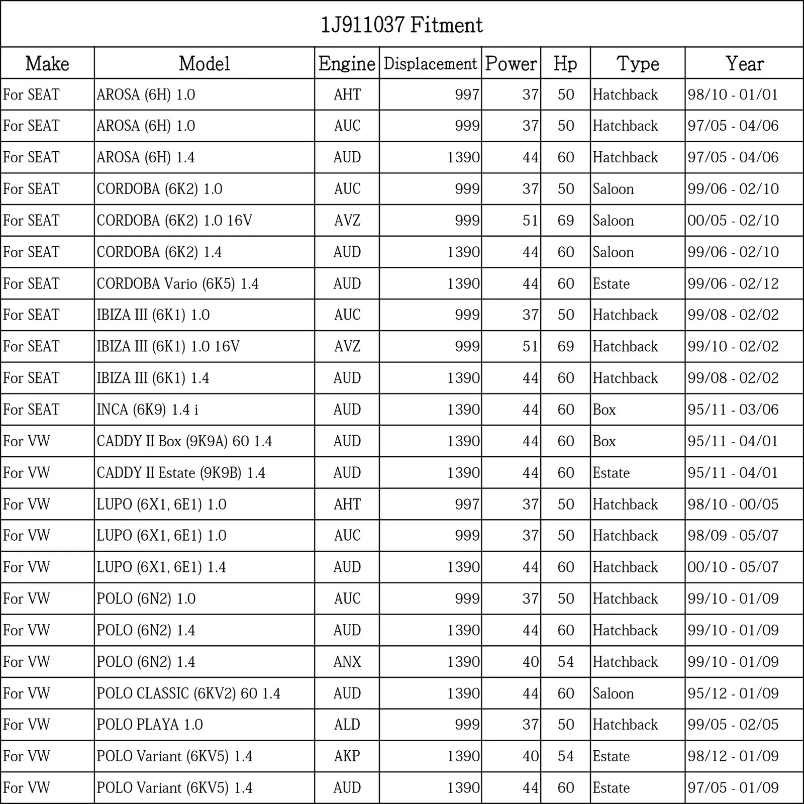 Приспособление:Для SEAT AROSA (6H) (1997/05 - 2004/06) 1,0 1,4Для SEAT CORDOBA (6K2) (1999/06 - 2002/10) 1,0 1,4Для SEAT CORDOBA Vario (6K5) (1999/06 - 2002/12) 1,4Для SEAT IBIZA III (6K1) (1999/08 - 2002/02) 1,0 1,4Для SEAT INCA (6K9) (1995/11 - 2003/06) 1.4iДля VW LUPO (6X1, 6E1) (1998/09 - 2005/07) 1,0 1,4Для VW CADDY II Box (9K9A) (1995/11 - 2004/01) 1,4Для VW CADDY II Estate (9K9B) (1995/11 - 2004/01) 1,4Для VW POLO (6N2) (1999/10 - 2001/10) 1,0 1,4Для VW POLO PLAYA (1995/01 - 2009/11) 1,0Для VW POLO CLASSIC (6KV2) (1995/11 - 2006/07) 1,4Для VW POLO Variant (6KV5) (1997/04 - 2001/09) 1,4