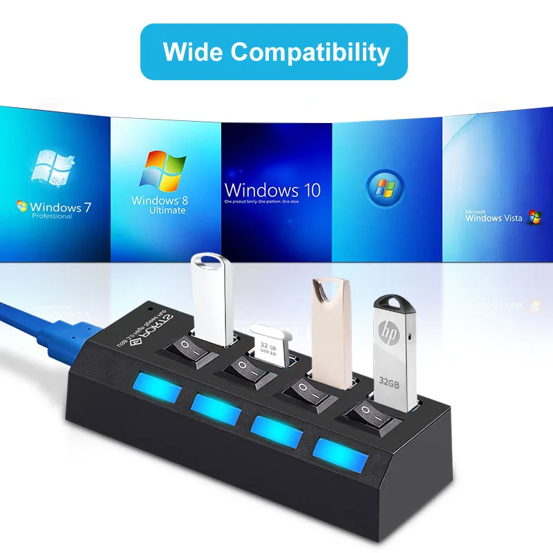 6.Этот компактный высокоскоростной концентратор USB 3,0/2,0 с 4 портами и 7 портами достаточно мал для путешествий и достаточно кабеля для удовлетворения ваших потребностей в подключении