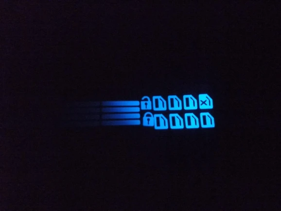 светятся совсем не сильно. отклеиваются от подложки только с одной позиции, полоски длиннее кнопок в 2 раза. ну и на кнопках смотрятся так себе. снял и выбросил