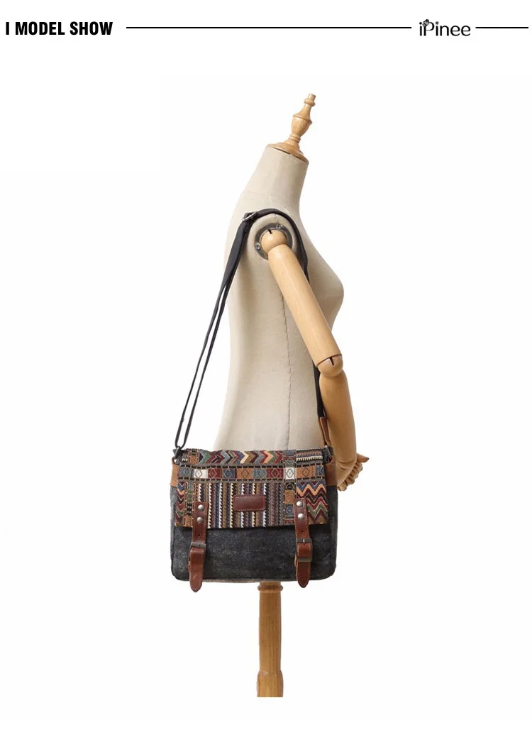 Сумка-мессенджер iPinee женская, брезентовый саквояж на плечо из воловьей кожи, портфель в ретро стиле, Офисная сумочка ручной работы для женщин
