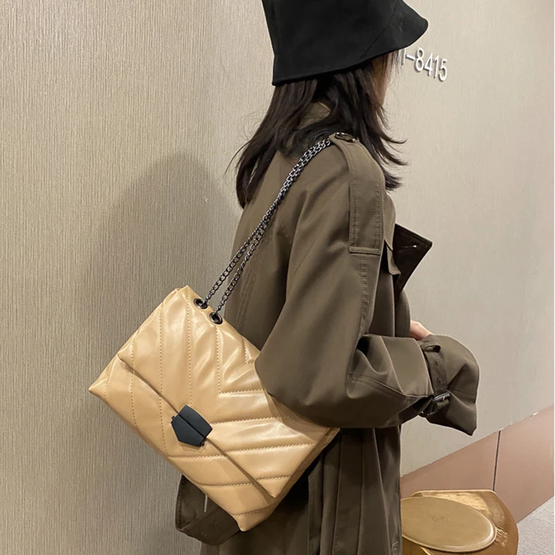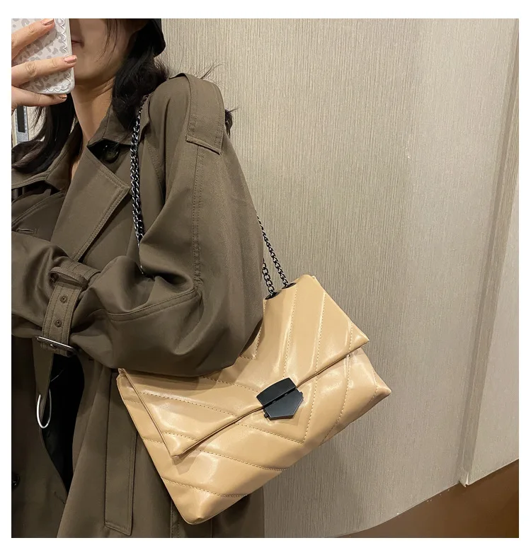 Сумки через плечо из мягкой искусственной кожи для женщин 2021, сумки на плечо с цепочкой, женские сумки большой емкости, Женская искусственная кожа