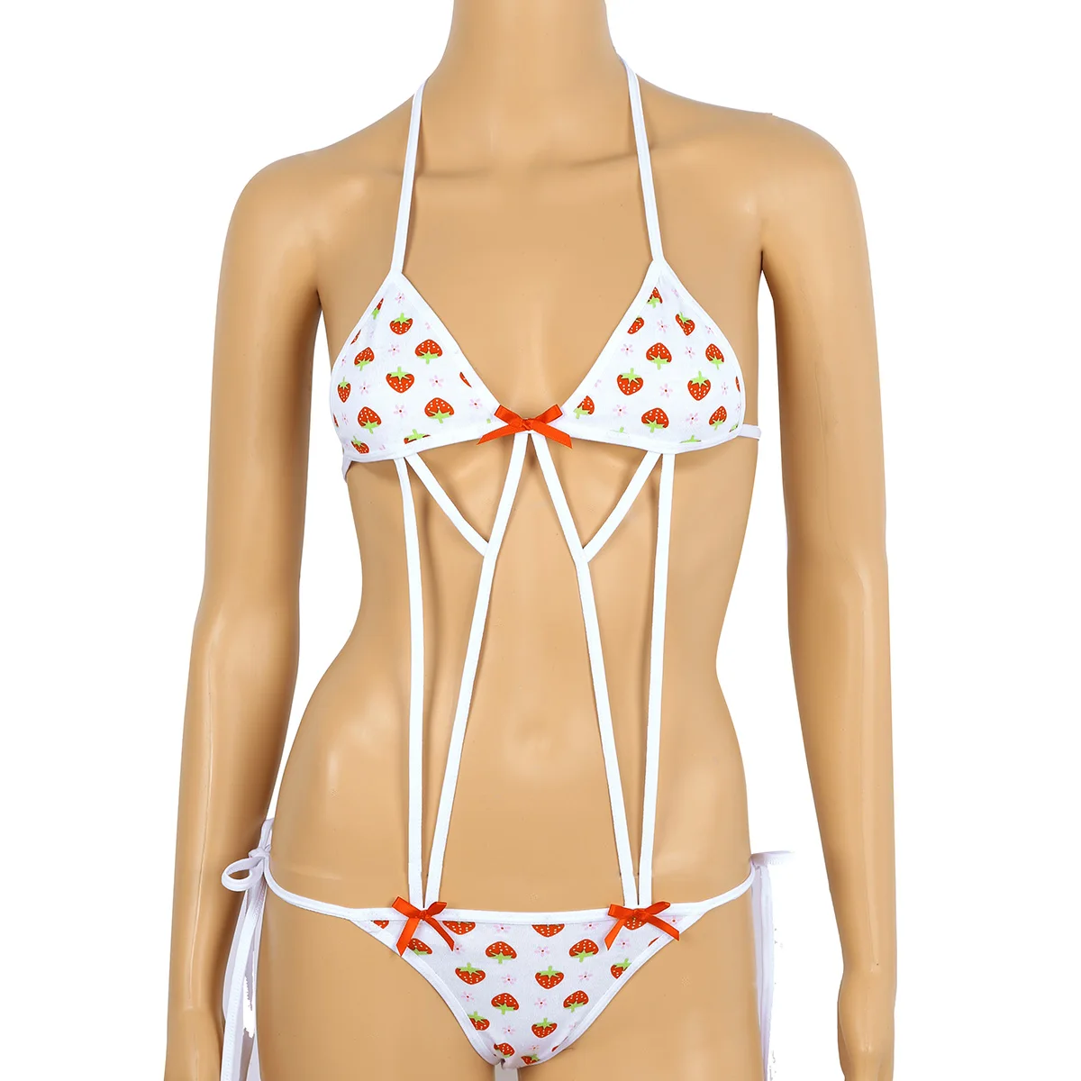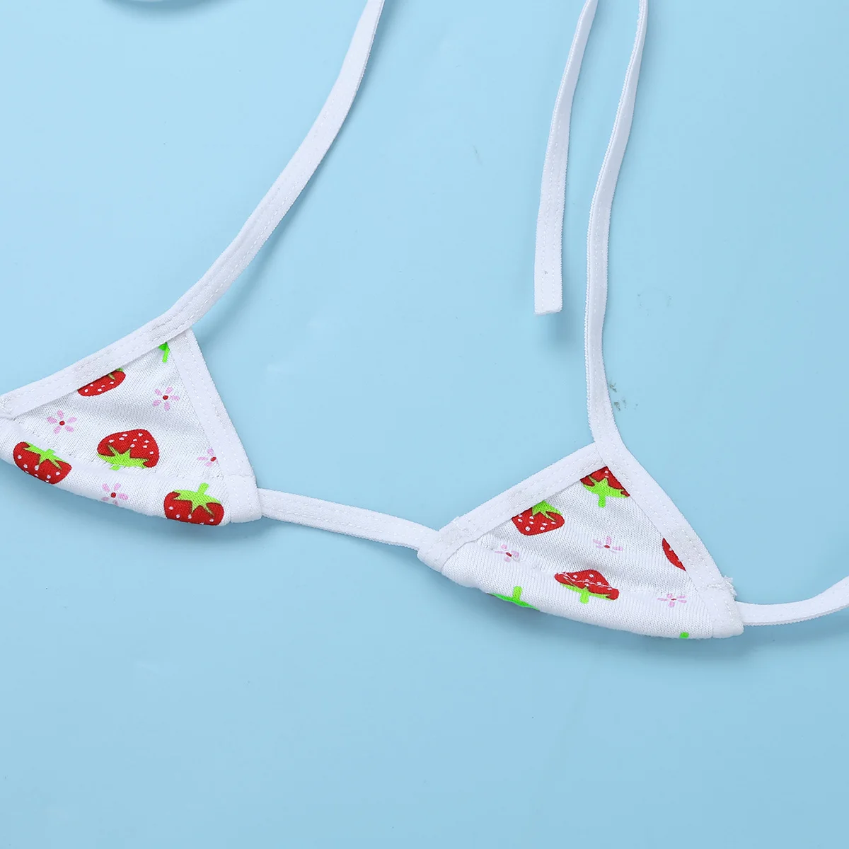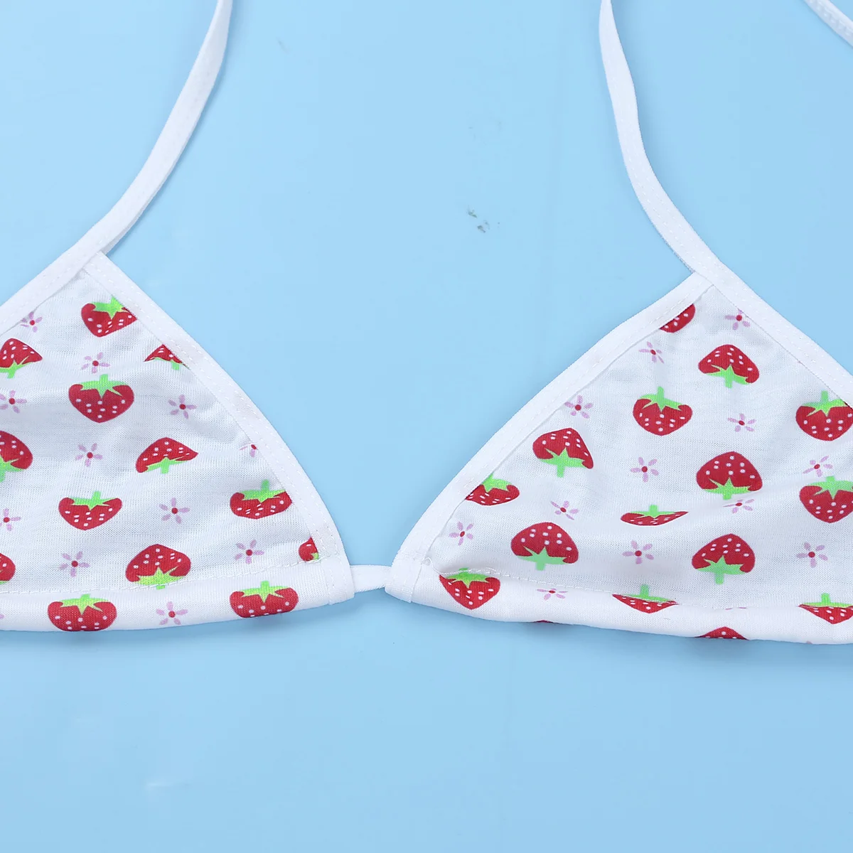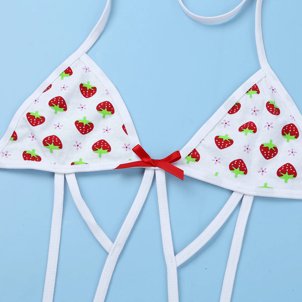 Женское сексуальное нижнее белье с рогаткой, клубничный узор, халтер, мини-бикини, топ с стрингами, Эротические трусики нижнее белье