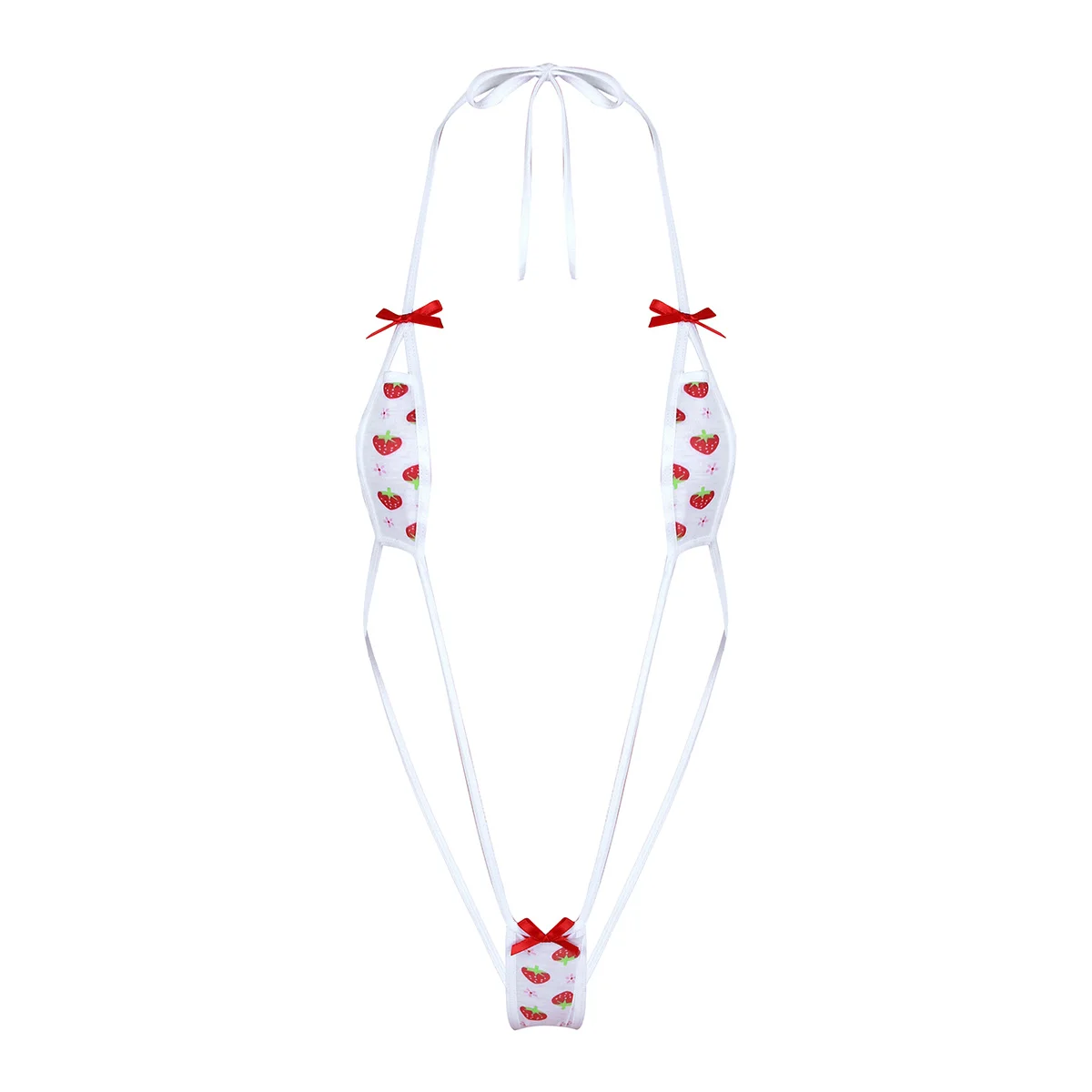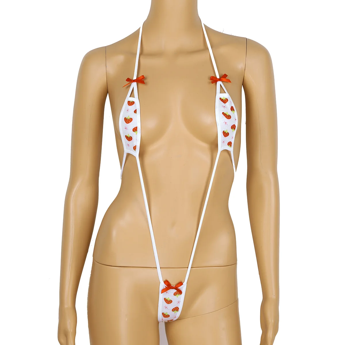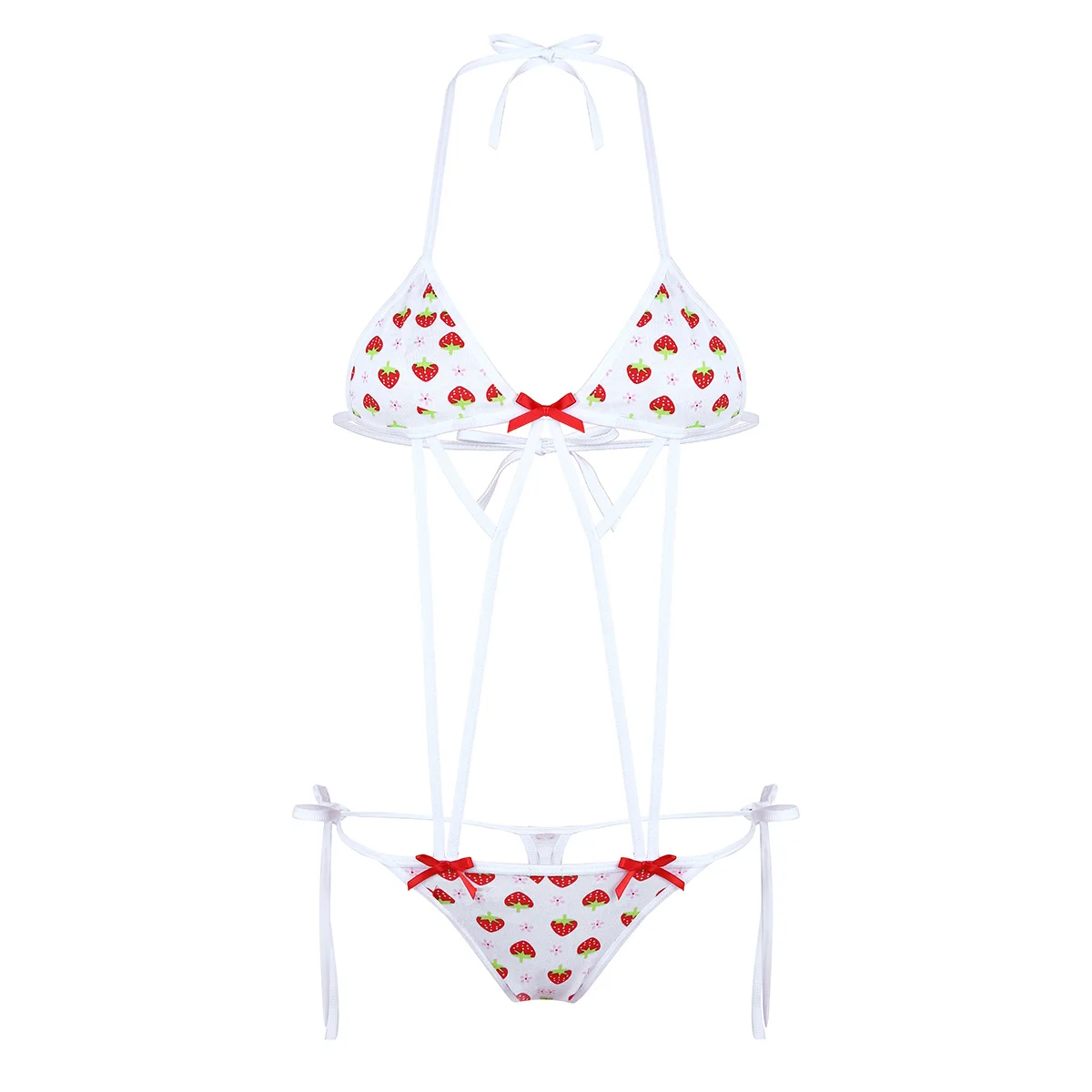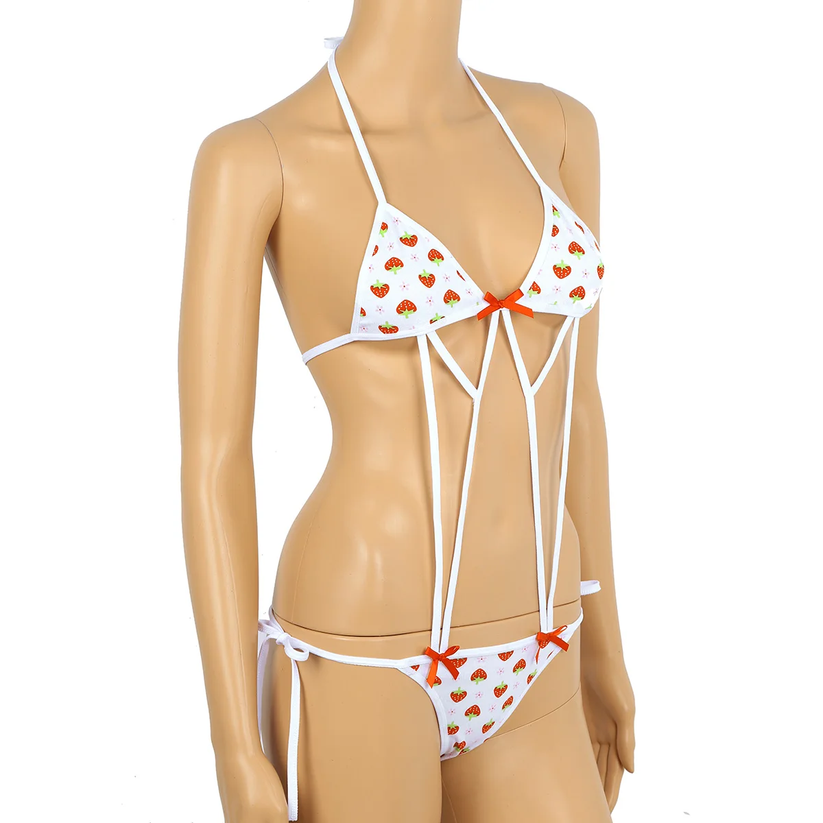 Женское сексуальное нижнее белье с рогаткой, клубничный узор, халтер, мини-бикини, топ с стрингами, Эротические трусики нижнее белье