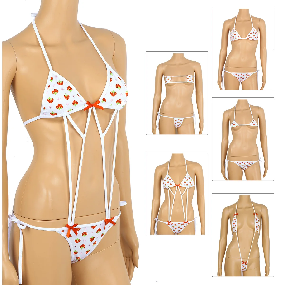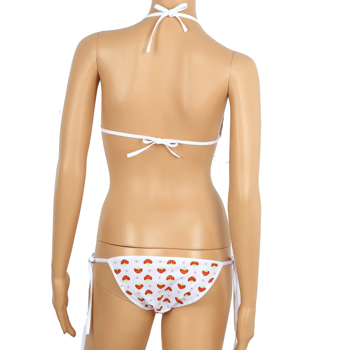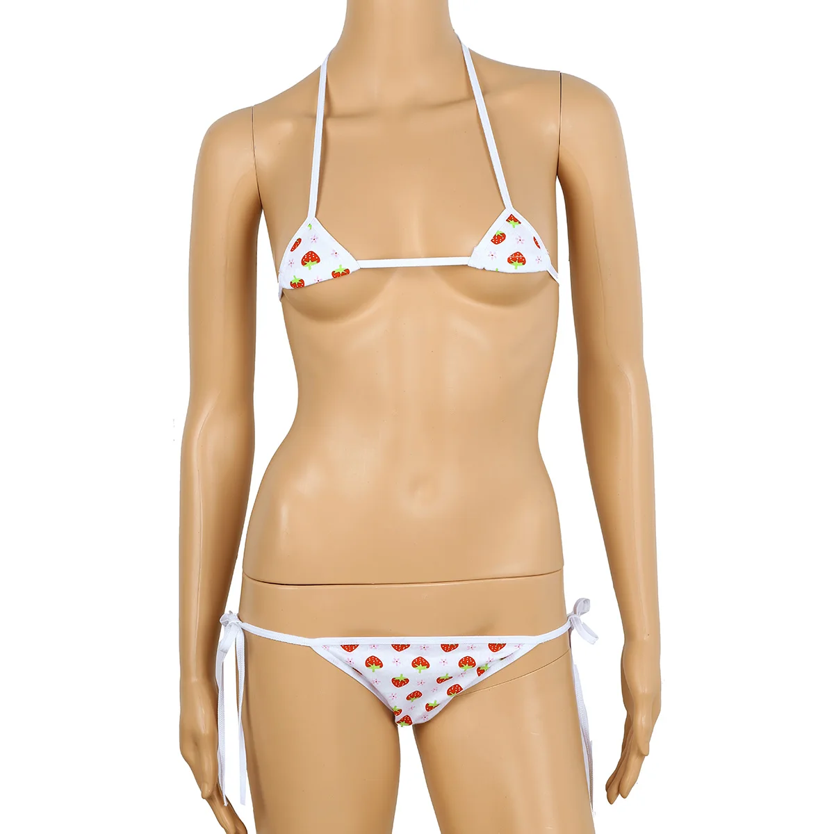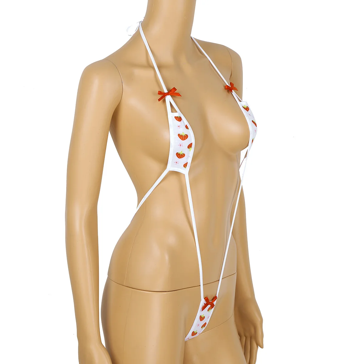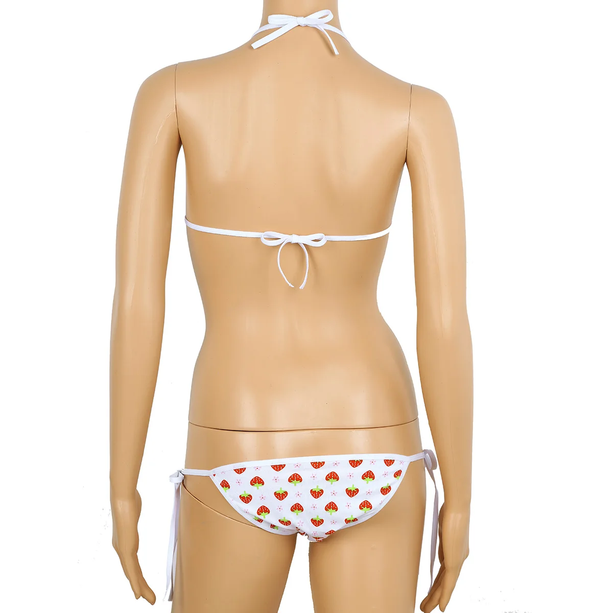 Женское сексуальное нижнее белье с рогаткой, клубничный узор, халтер, мини-бикини, топ с стрингами, Эротические трусики нижнее белье