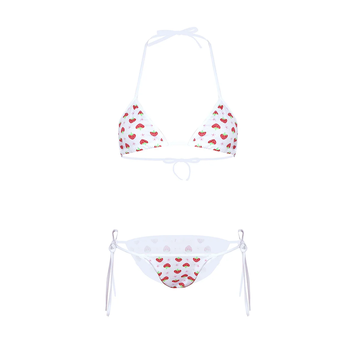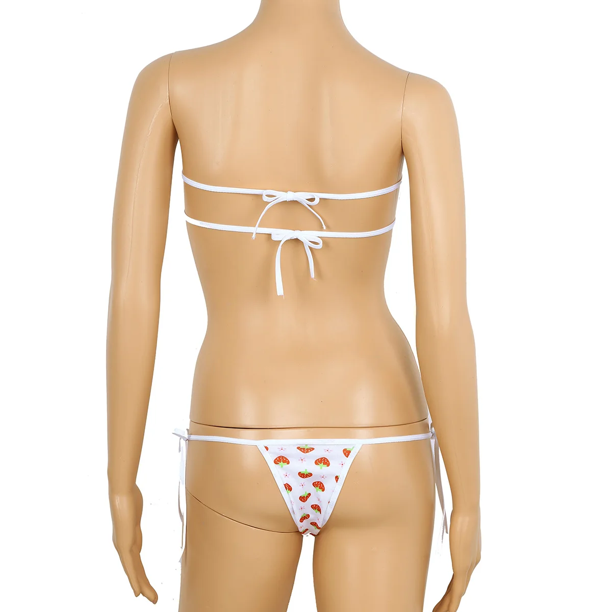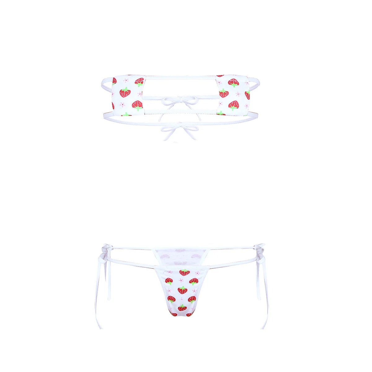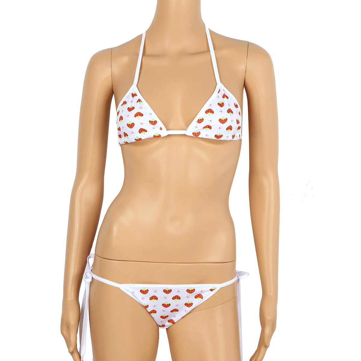Женское сексуальное нижнее белье с рогаткой, клубничный узор, халтер, мини-бикини, топ с стрингами, Эротические трусики нижнее белье