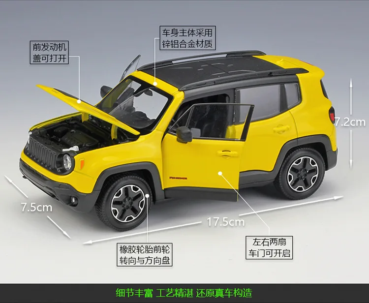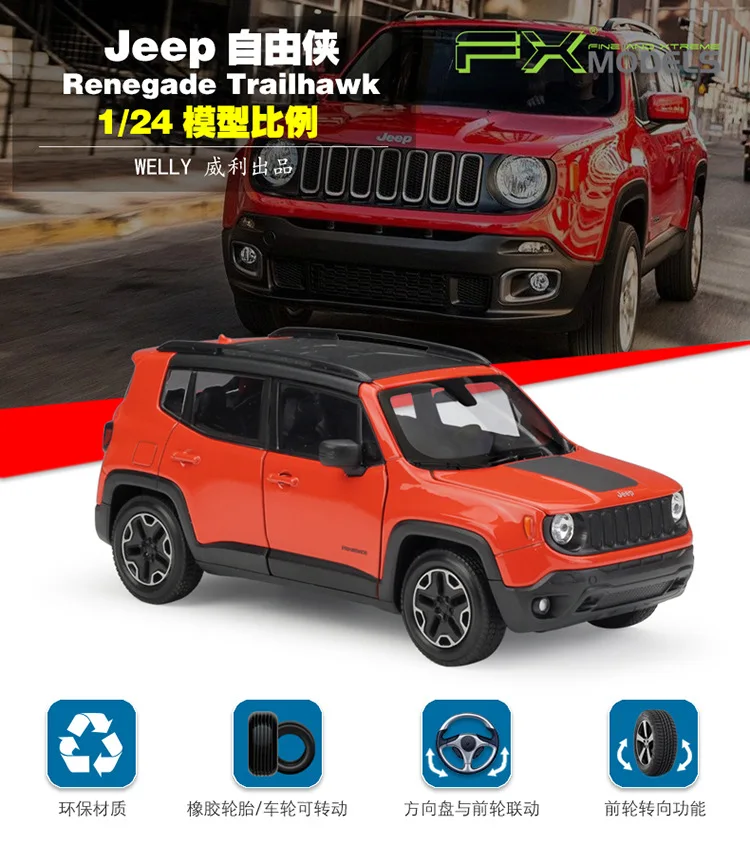 WELLY 1:24 Jeep Renegade Trailhawk SUV, сплав, роскошный автомобиль, литье под давлением, модель автомобилей, коллекция игрушек, рождественский подарок