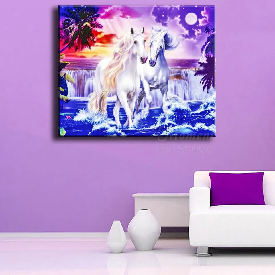 Когда-либо в настоящий момент Белая лошадь водопад алмазов картина Единорог красивых фотографий стразы камни в форме ромба настенный художественный Декор 5L1461