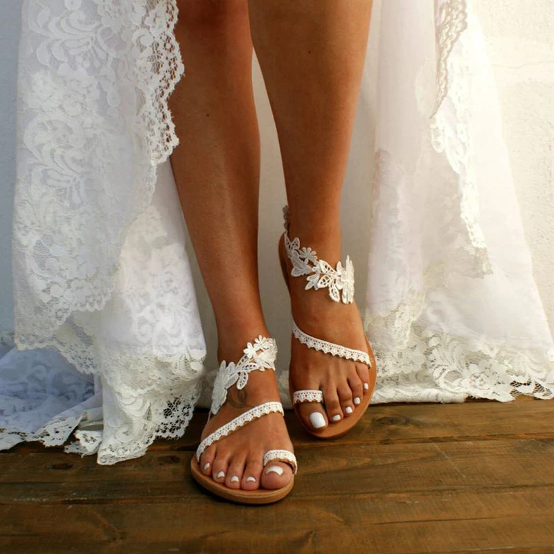 Сандалии romaine en dentel blanche для женщин, обувь plates enfiler...