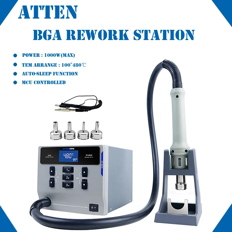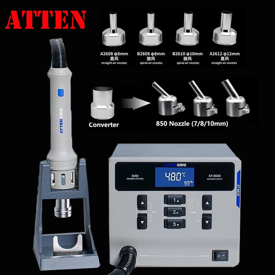 Паяльная станция ATTEN ST-862D, пистолет горячего воздуха, бессвинцовый, интеллектуальный цифровой дисплей, 1000 Вт, паяльная станция для ремонта микросхем PCB телефона