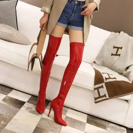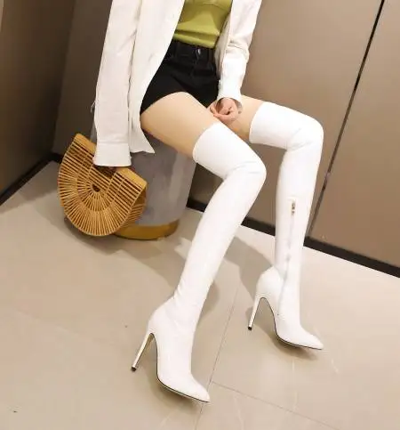 Ботфорты женские на высоком каблуке, Стрейчевые сапоги до бедра, пикантная обувь, большие размеры, Осень-зима