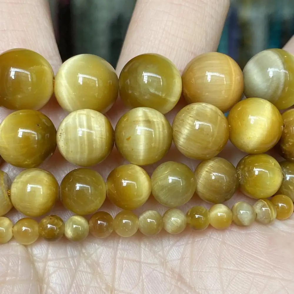 Круглые бусины-разделители из золотистого натурального камня тигровый глаз, подвеска для браслета, ожерелья, нить 4, 6, 8, 10, 12 мм, 15 дюймов