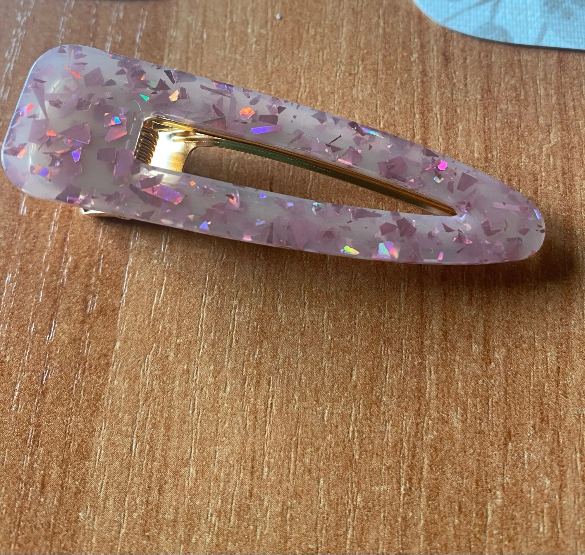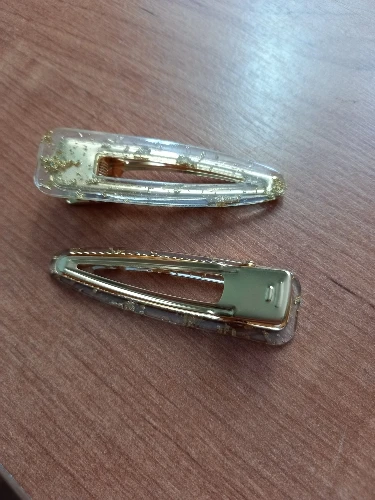 Прийшло дуже швидко, очікувала 16 серпня, а отримала 2го) На фото заколки здаються трохи рожевими і менш прозорими, але насправді рожевого відтінку в тих немає, вони білі, і пластик більш прозорий, але звісно не як скло. На волоссі тримаються добре, основа зроблена якісно. Покупкою задоволена повністю, носитиму з задоволенням)