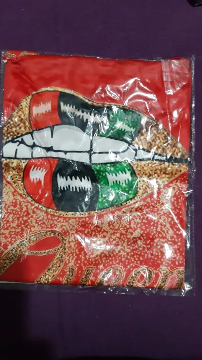Chegou aqui na suiça com uma semana. e bem fiel a cor e a estampa. porém é uma blusa e não um body como pensei e e bem transparente, porem e lindooo, o tecido é lycra e comprei o M porem ficou grande, pois só peso 55 kg.