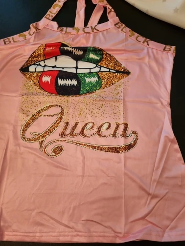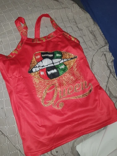 Майка женская, из полиэстера, с буквенным принтом в виде губ