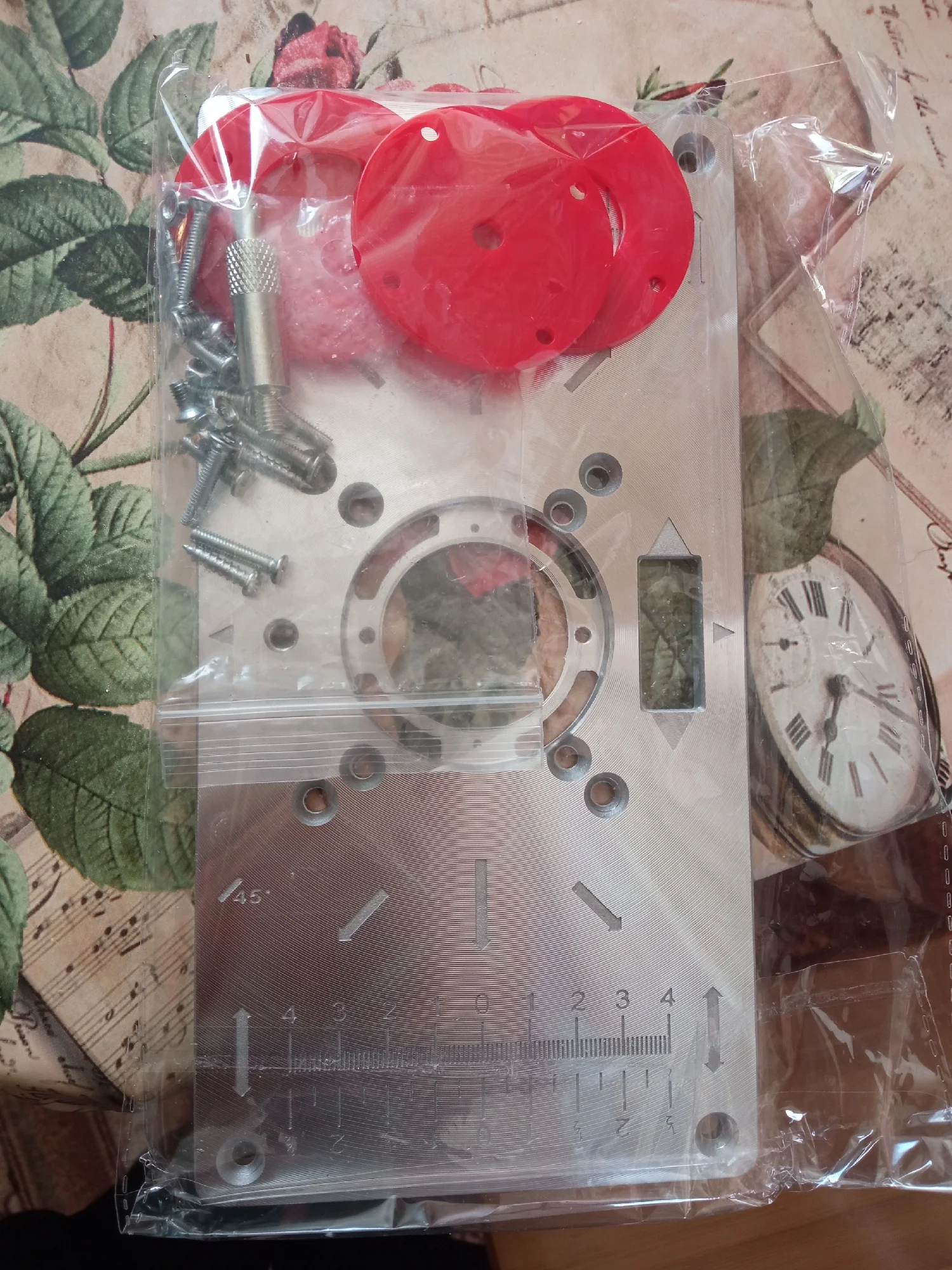 Особенности:Изготовлен из алюминиевого сплава, практичен в использовании и не ржавеет.Удобная Втулка с центральным отверстием, используемая для выравнивания маршрутизатора, поэтому она находится по центру в отверстии для бит.Сделайте аккуратное сверление и монтаж любого роутера простым.Он прост в использовании и делает работу хорошо выполненной.Характеристики:Материал: пластина из алюминиевого сплава, пластиковые кольцаТип: с 4 красными кольца со вставками, с 4 черными кольца со вставками (опционально)Размер: прибл. 235*110*8 мм/9,3*4,7 * 0.3inРасстояние между отверстиями: около 62*70 мм/2,44*2,76 дюймаВес: 450 гПосылка: 250*130*40 мм/9,8*5,1 * 1.6inВес посылка: 502 г/1.1lbКомплектация:1 * вставная пластина для фрезерного стола4 * маршрутизатор кольца со вставками1 * упаковка крепежных винтов