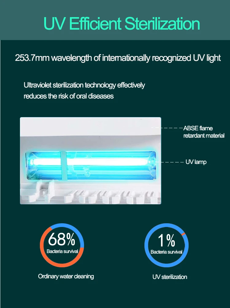 УФ-стерилизатор 2 в 1 для зубных щеток, с защитой от бактерий