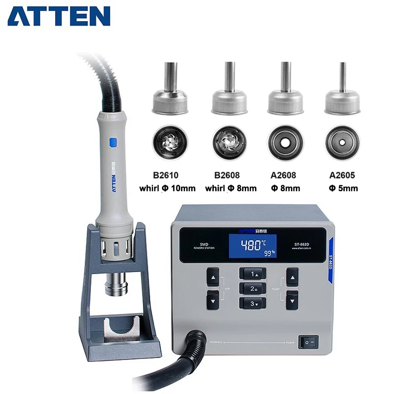 ATTEN ST862D 1000 Вт Интеллектуальная паяльная станция с горячим воздухом для телефона, паяльная станция с прямым ветром и циклоном