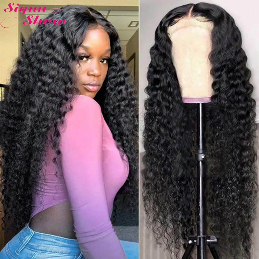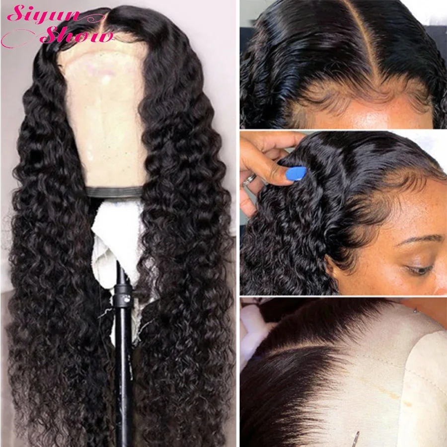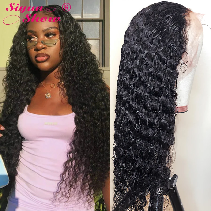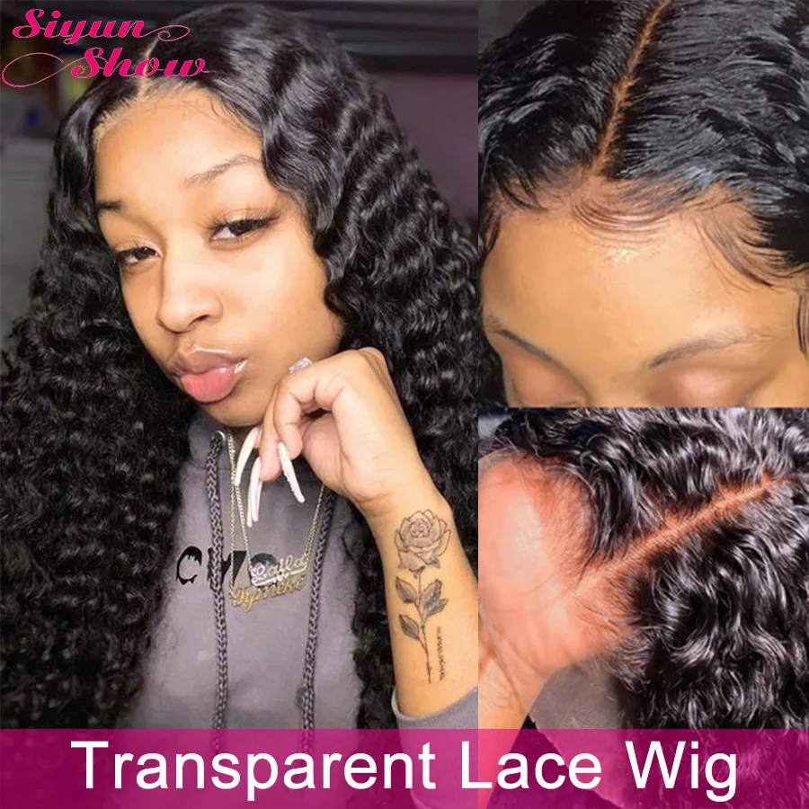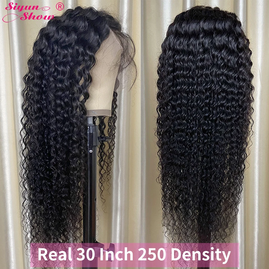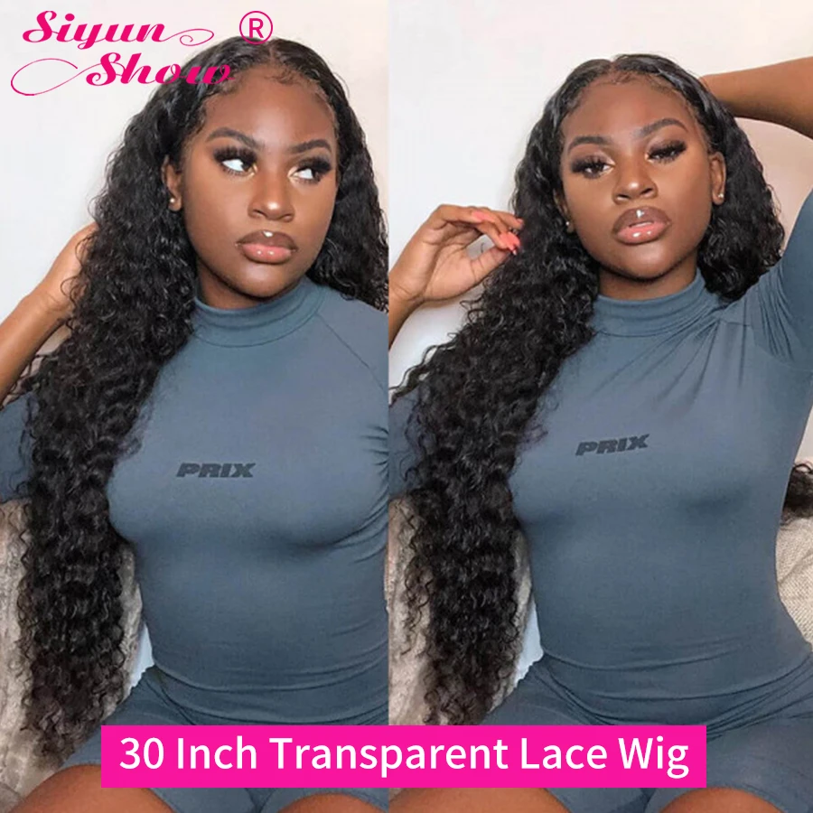 Передний парик Siyun Show с глубокой волной, 30 дюймов, вьющиеся человеческие волосы, парик плотностью 250, прозрачный парик на сетке HD, 13x13x6, фронтальный парик на сетке