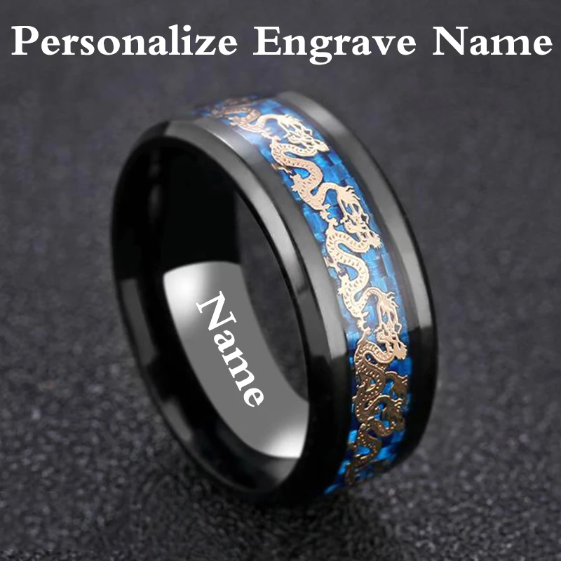 Кольцо SHOUMAN из углеродного волокна с инкрустацией драконом, обручальное кольцо с именем персонализированного имени для женщин и мужчин, модные ювелирные украшения