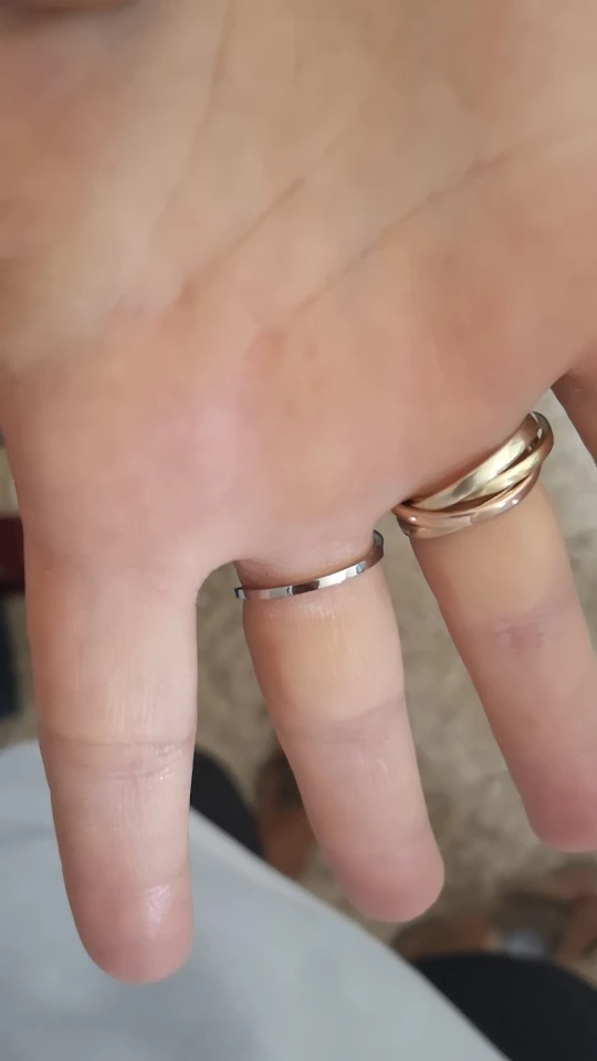 Действительно мило... Рекомендуем! Края немного острые, когда вы снимаете кольцо или надеваете его, но качество отличное, в противном случае, и все мои семьи предполагают, что я заплатил гораздо больше, чем фактическая стоимость. Я получил еще два для членов моей семьи... Мой товар был серебристым, не могу говорить о качестве золота.