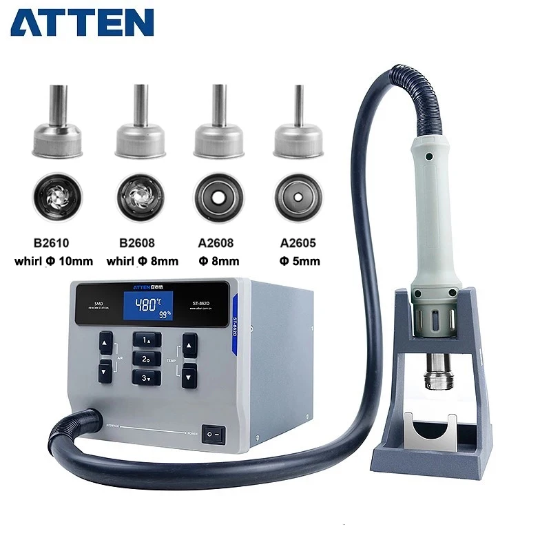 Паяльная станция ATTEN ST-862D, 1000 Вт, строительный фен с цифровы...