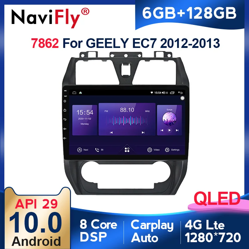 Автомобильный мультимедийный проигрыватель 2DIN, 6 + 128 ГБ, Android 10 для Geely Emgrand EC7 1 2012 - 2013