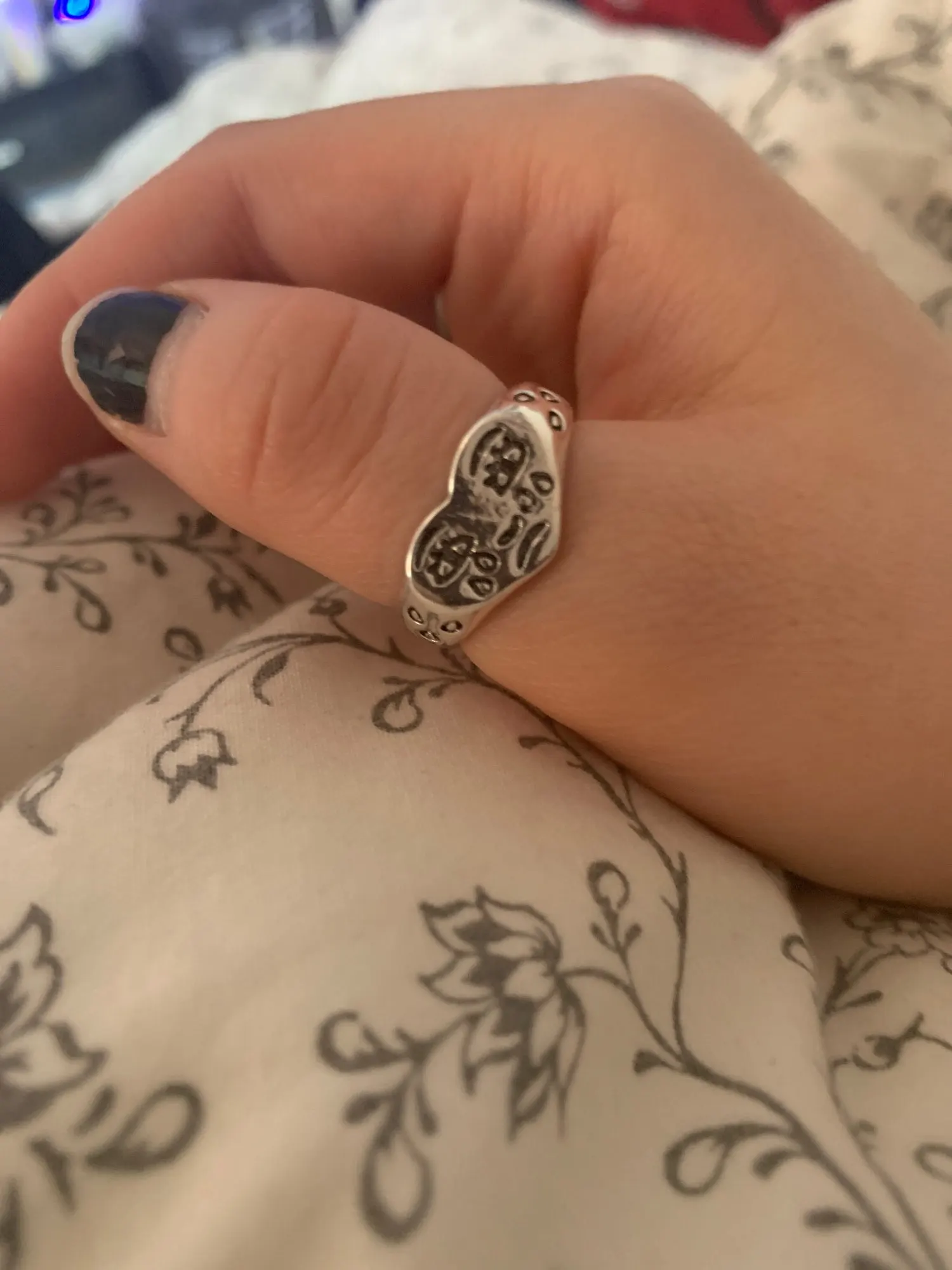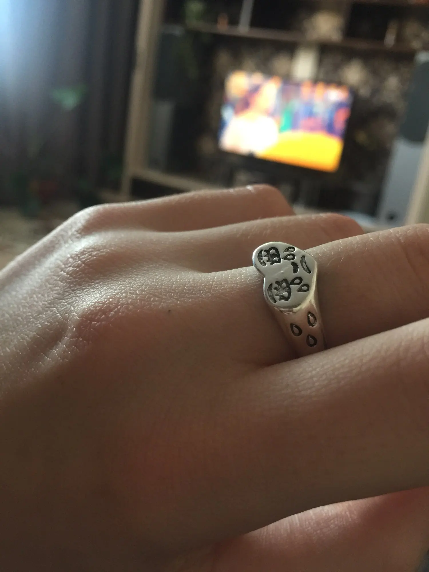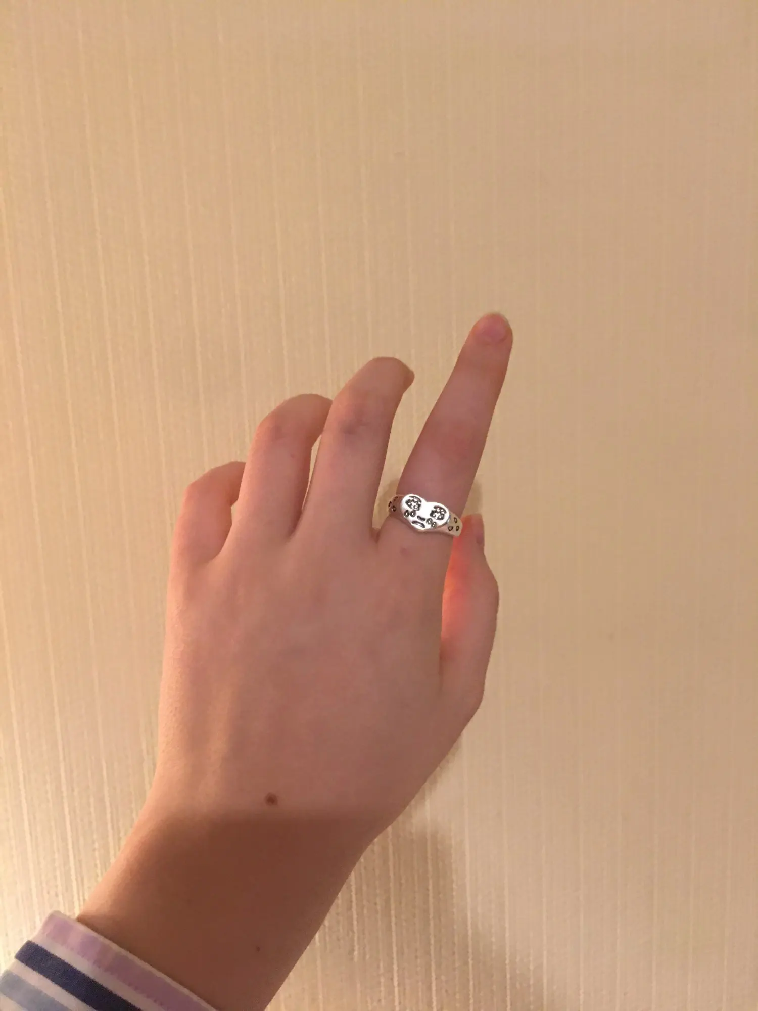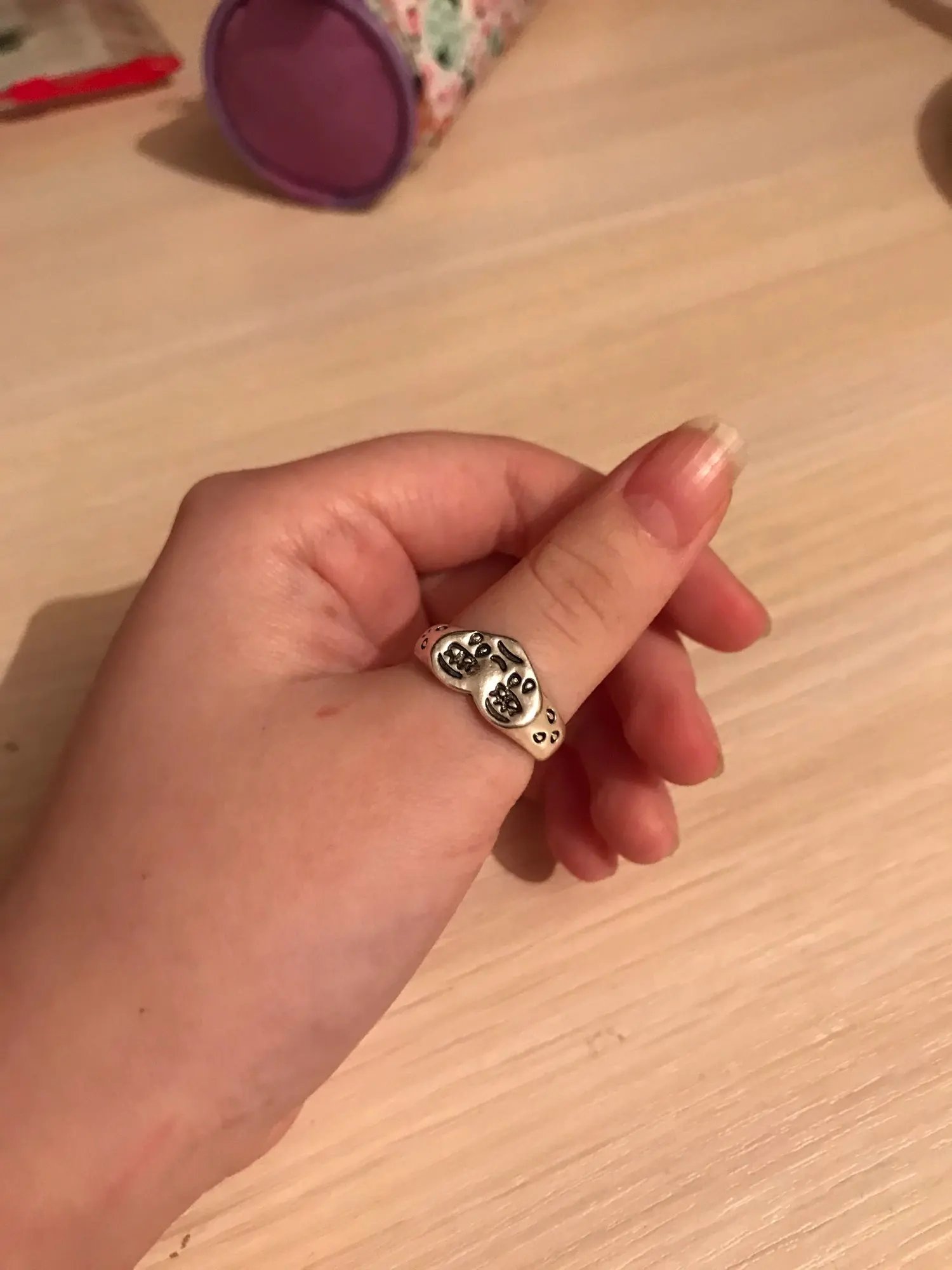 очень милое, нооо слишком большое для моих пальцев (даже несмотря на то что оно регулируется), могу носить только на большом пальце. так что если у вас нормального размера руки, а не маленькие как у меня, то очень рекомендую!!