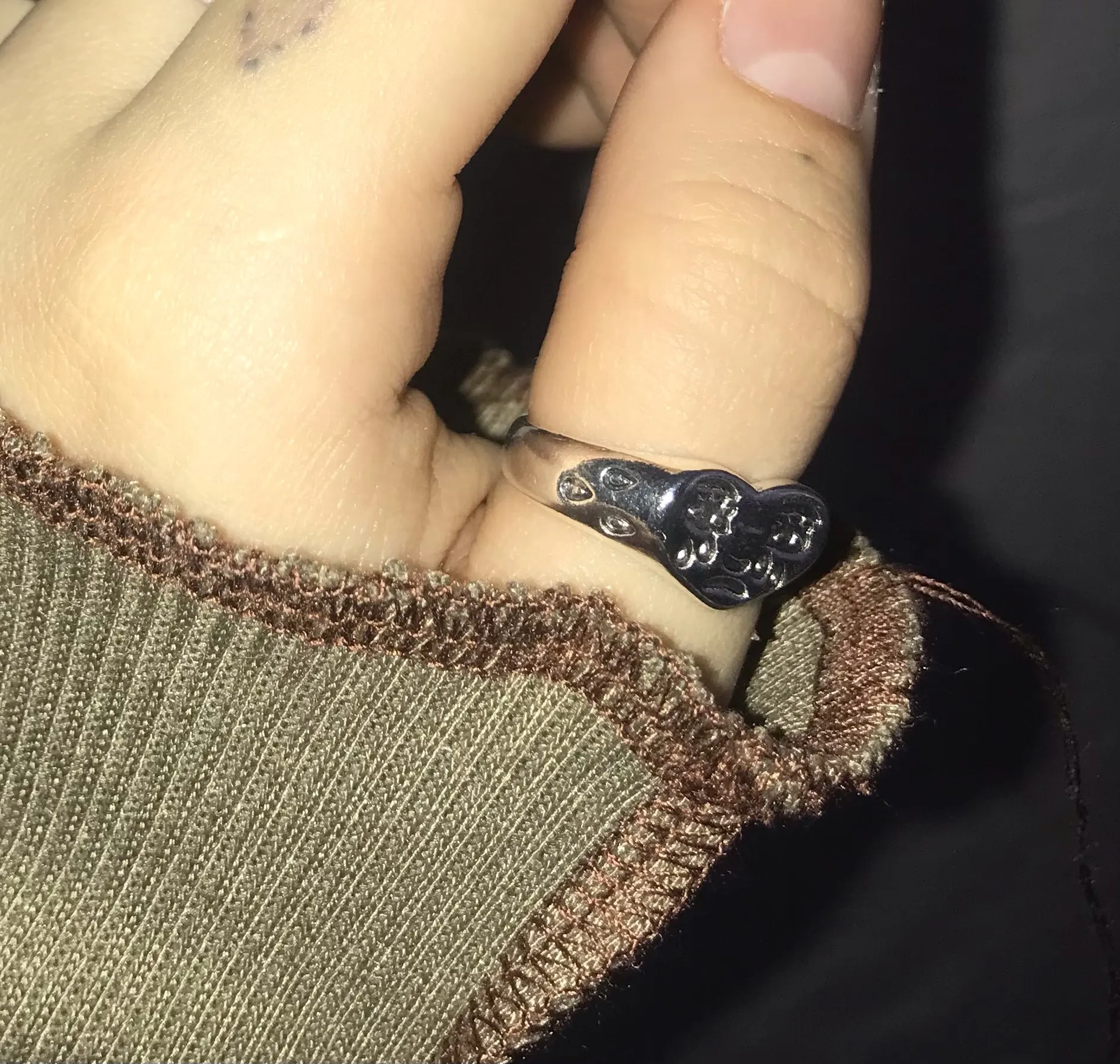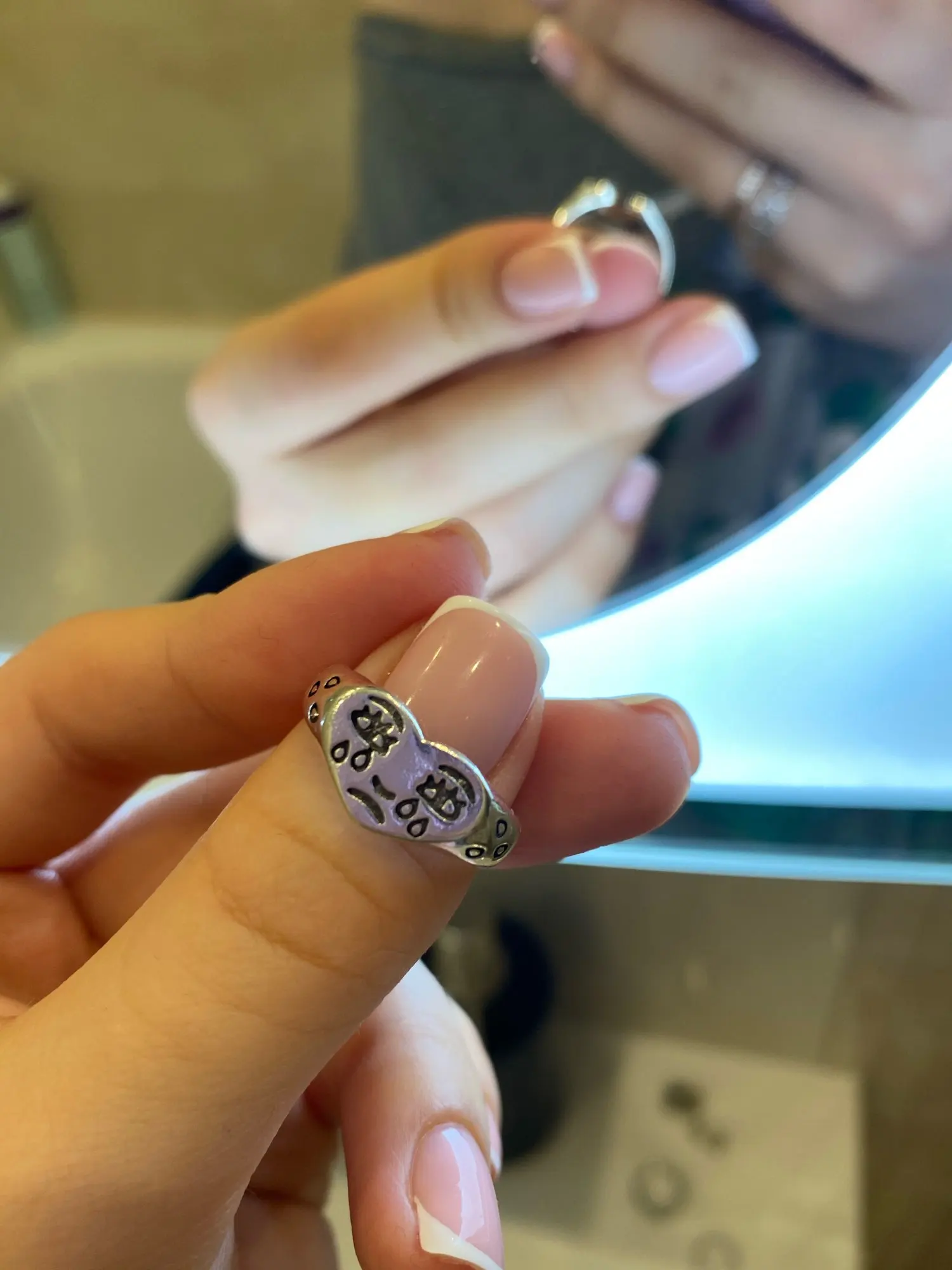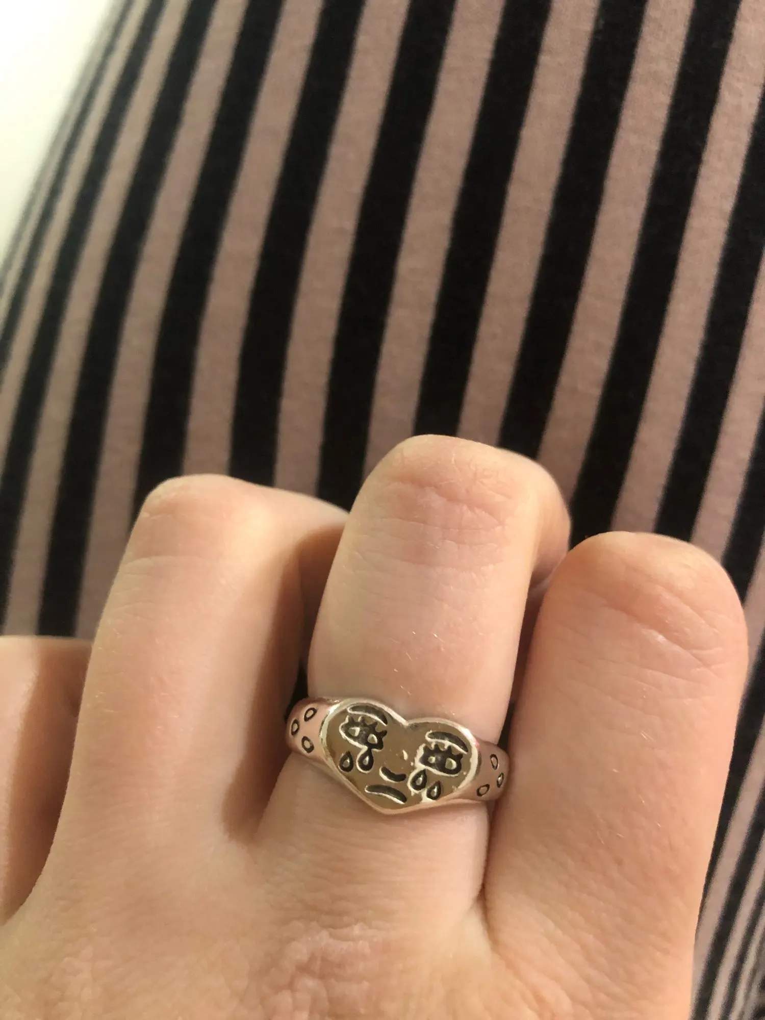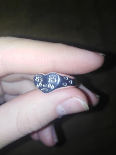 очень милое, нооо слишком большое для моих пальцев (даже несмотря на то что оно регулируется), могу носить только на большом пальце. так что если у вас нормального размера руки, а не маленькие как у меня, то очень рекомендую!!