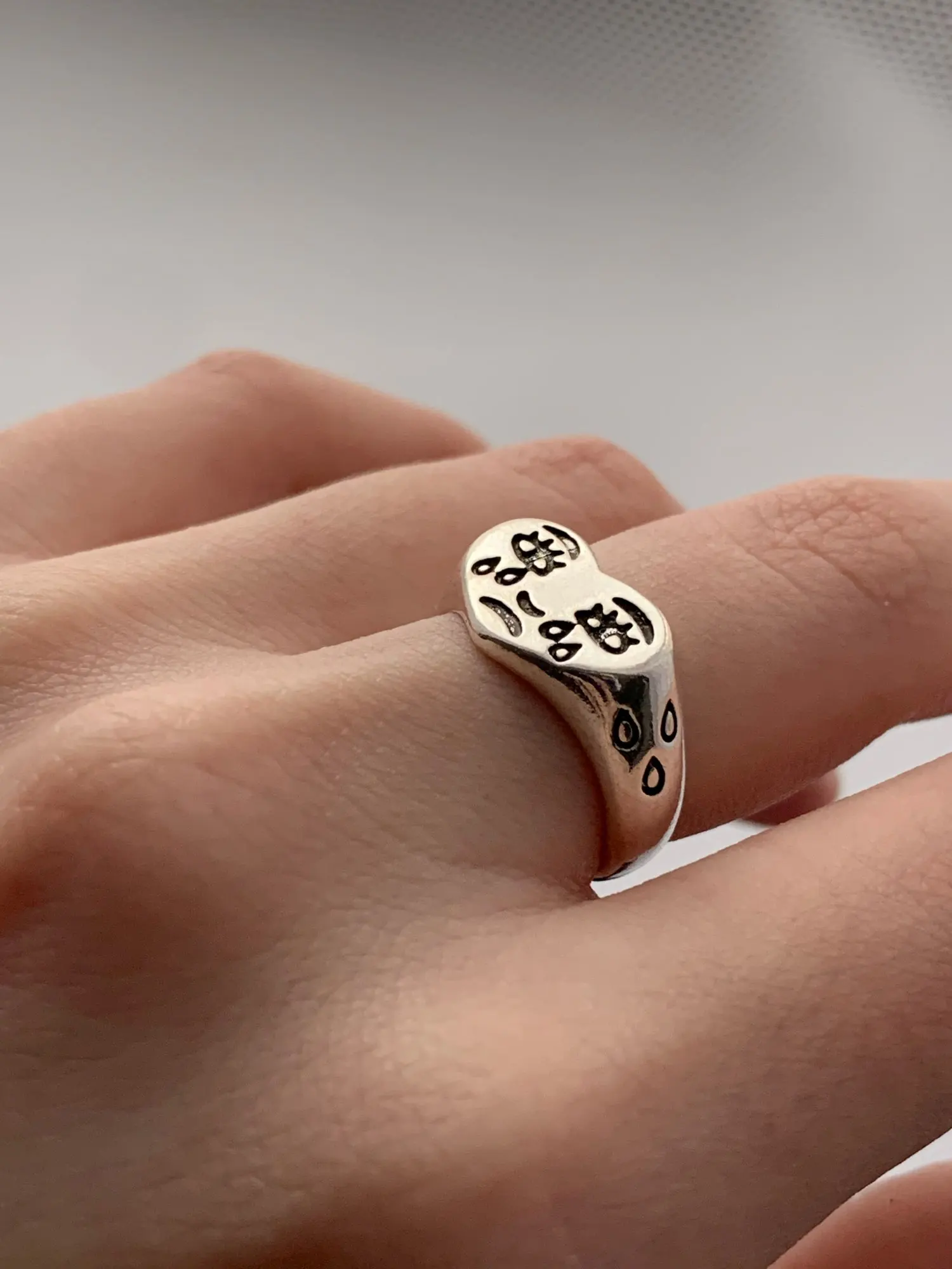 Кольцо женское, с рисунком лица, регулируемое по размеру