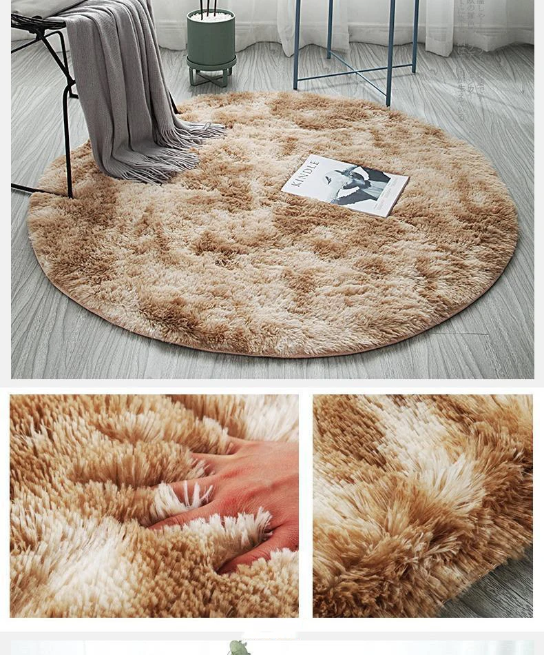 Круглый плюшевый ковер в современном стиле, украшение для гостиной, 2021, разноцветный пушистый коврик с градиентом, детский прикроватный напольный ковер Bay оконная подушка